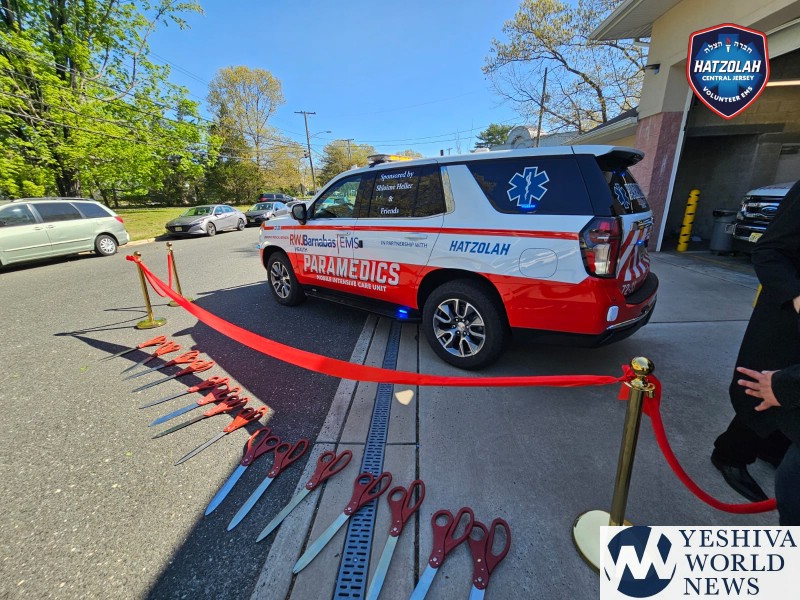 Hatzolah of Central Jersey held a ribbon-cutting ceremony Monday morning to mark the addition of a brand-new, state-of-the-art paramedic vehicle to its fleet. The new vehicle was generously sponsored by Shloimy Heller and friends, l’zecher nishmas Rav Yitzchok Stefansky, z”l.