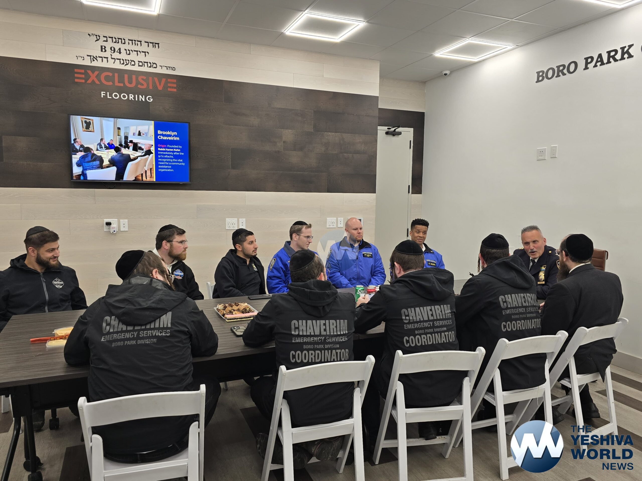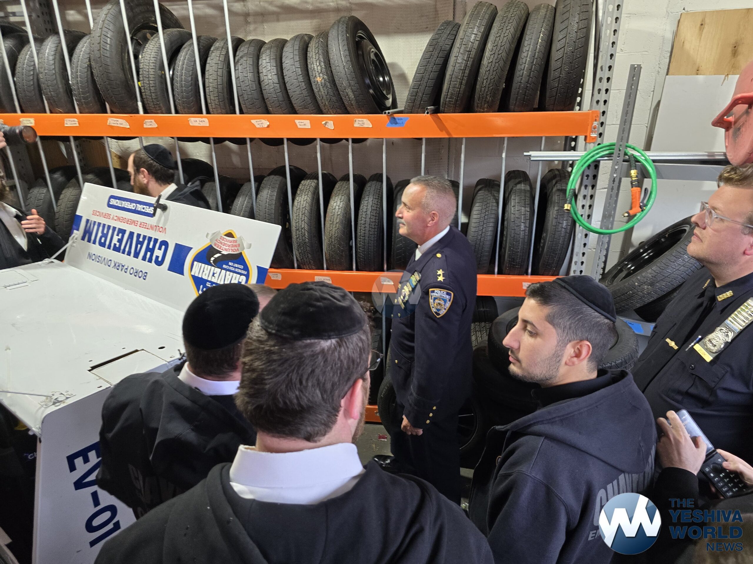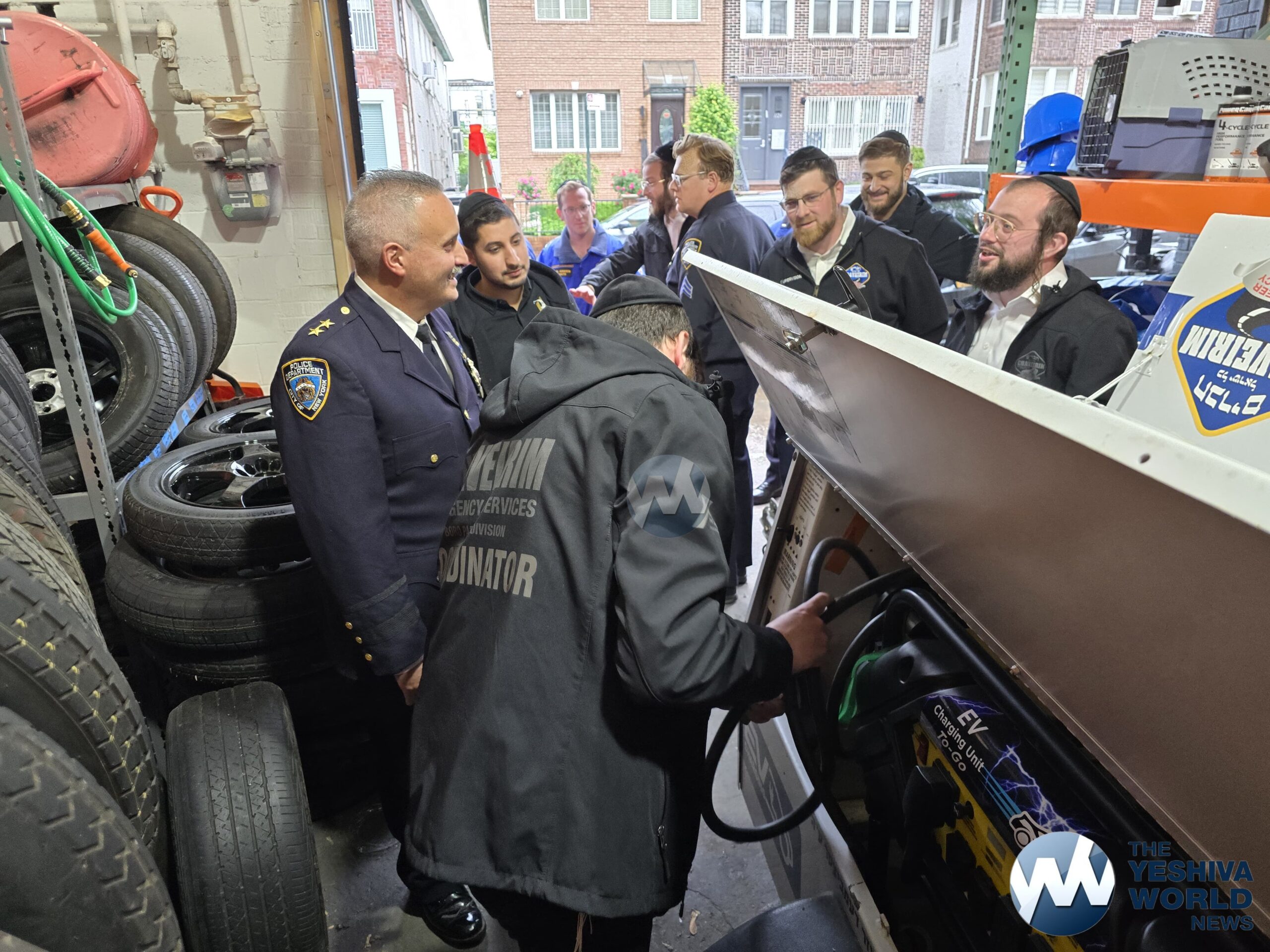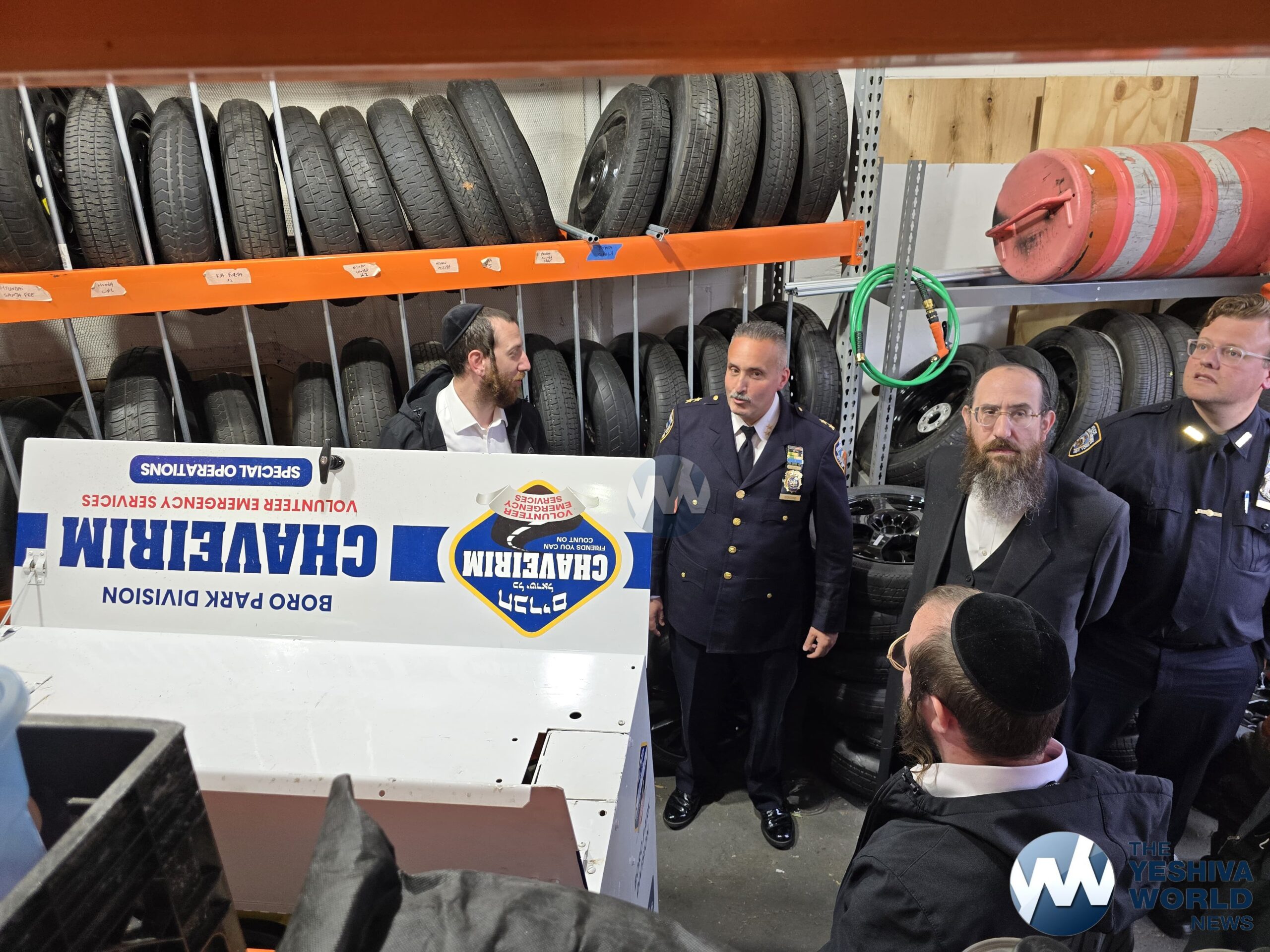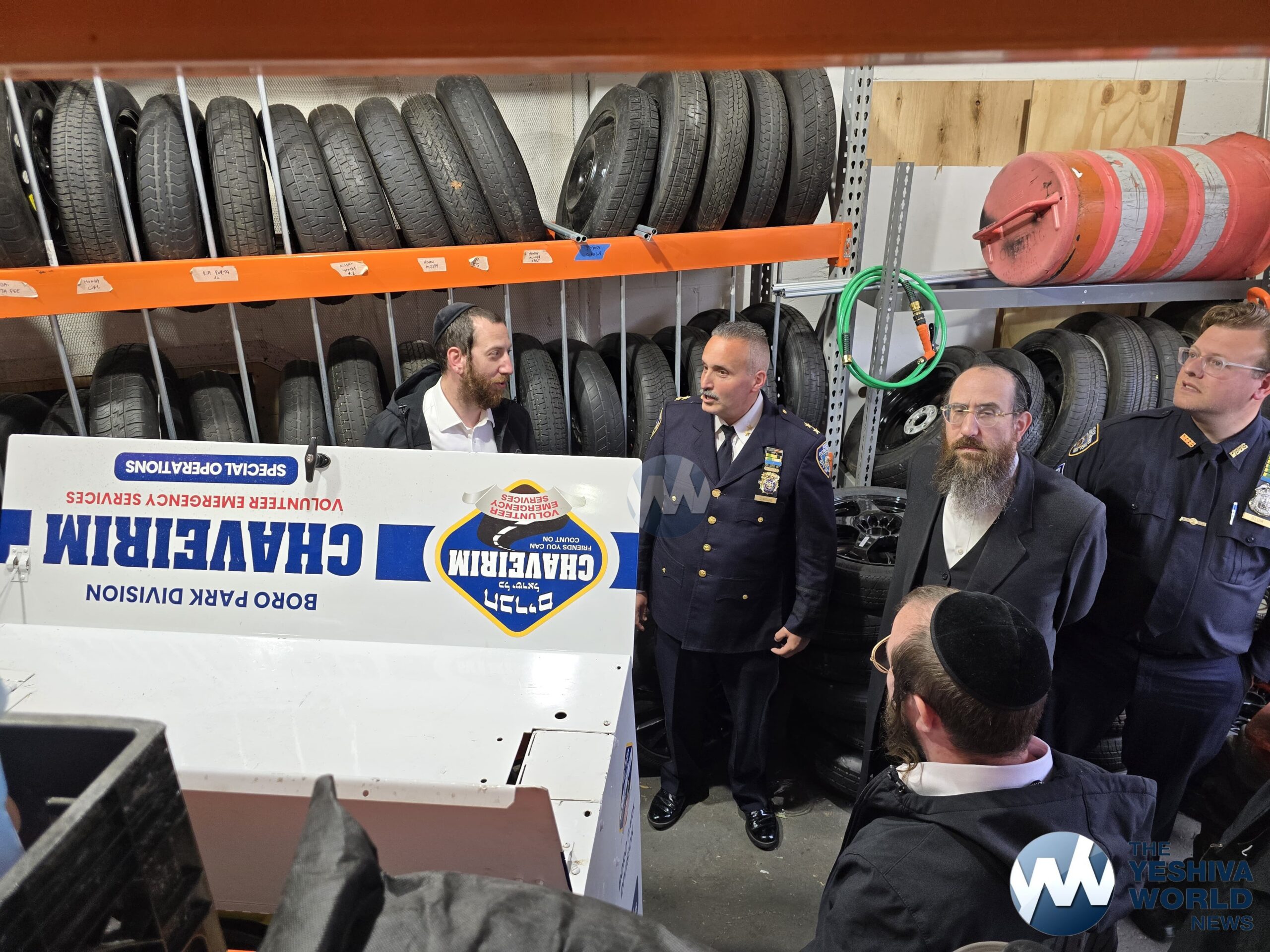 Chief Giordano was given a full tour of the garage and dispatch center, where he got a close-up look at Chaverim’s operations and the various tools and equipment they use to assist the community daily. Volunteers explained the wide range of calls they handle—everything from car lockouts and flat tires to helping during blackouts, floods, and large-scale events.