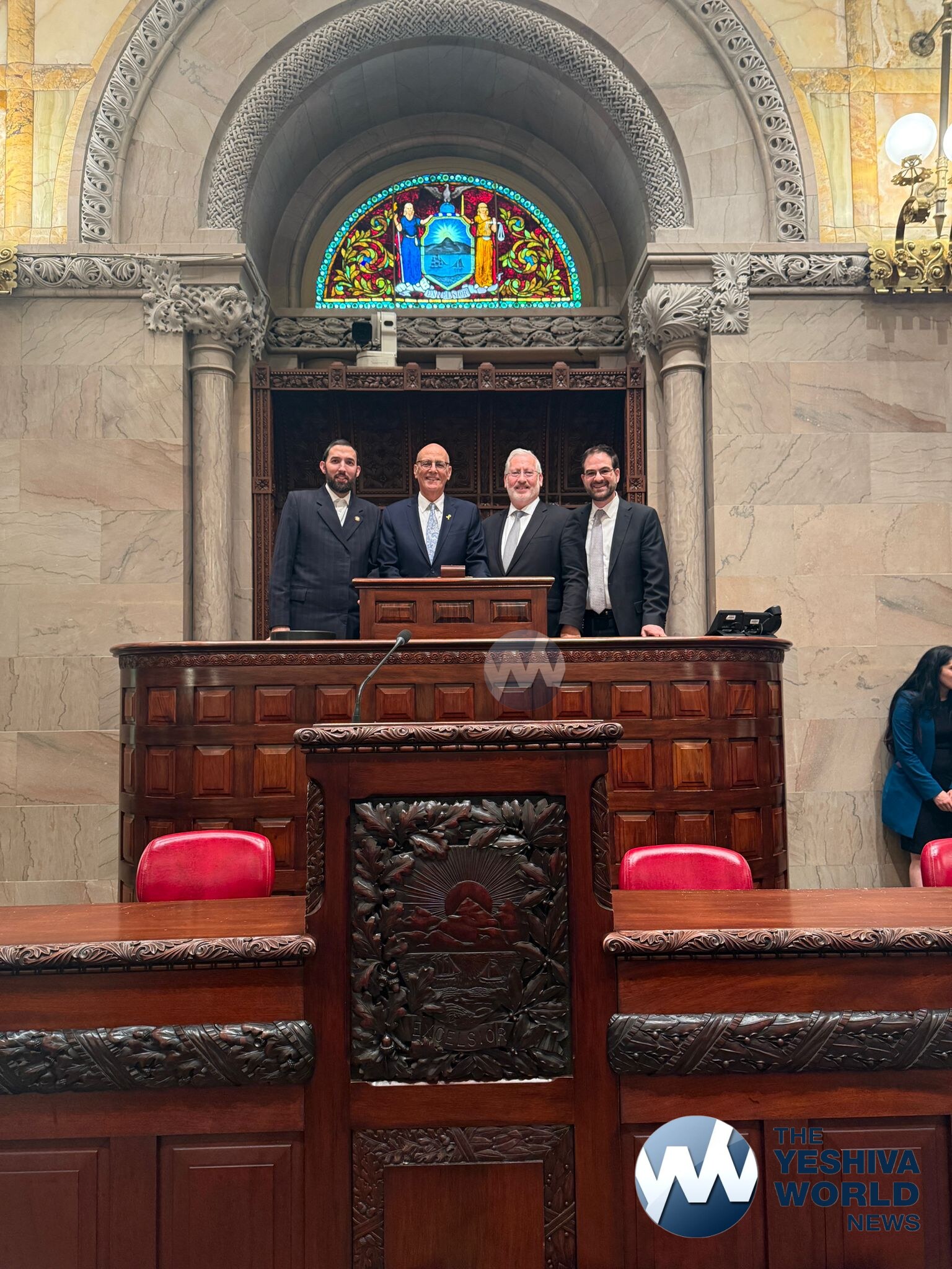 Among those present in Albany was Flatbush Jewish Community Coalition (FJCC) Chairman Josh Mehlman, who joined to show his support for Sutton. Mehlman was greeted warmly by fellow Orthodox Jewish elected officials, including Assemblyman Aron Wieder and Assemblyman Kalman Yeger, further emphasizing the broad communal backing for Sutton’s new role.