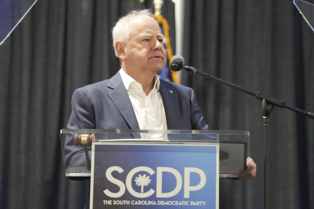 It was Walz’s third set of large-scale remarks in less than 24 hours for Walz, who, along with Maryland Gov. Wes Moore, spoke Friday night at the party’s fundraising dinner, as well as an after-party fish fry hosted by Rep. Jim Clyburn.