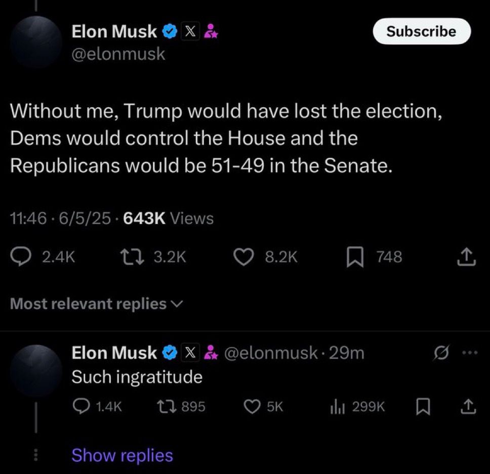 Adding fuel to the fire, Musk questioned Trump’s claims that he “knew the inner workings of the bill better than anybody,” asserting, “False, this bill was never shown to me even once and was passed in the dead of night so fast that almost no one in Congress could even read it!”