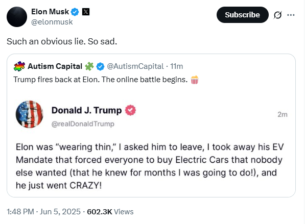 YWN NOTE: The original article is below. Since our article has been published, Trump and Musk have escalated their attacks on each other.