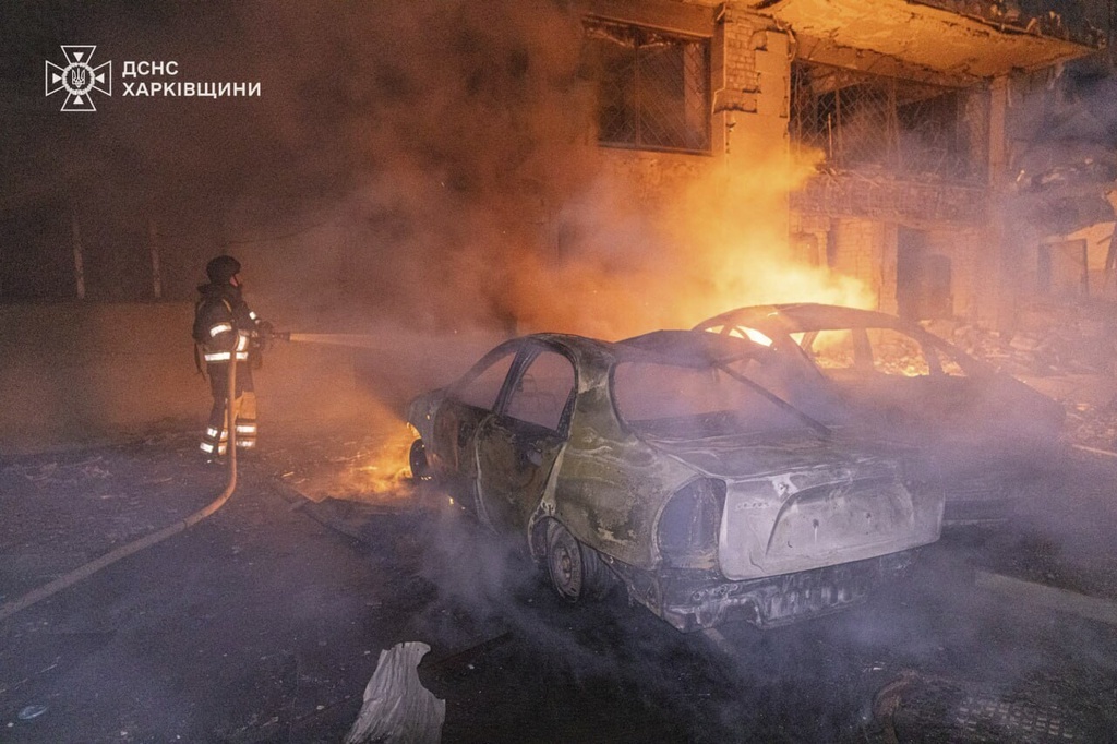Kharkiv Mayor Ihor Terekhov said Russian drones targeted residential districts, educational facilities, kindergartens and other civilian infrastructure.