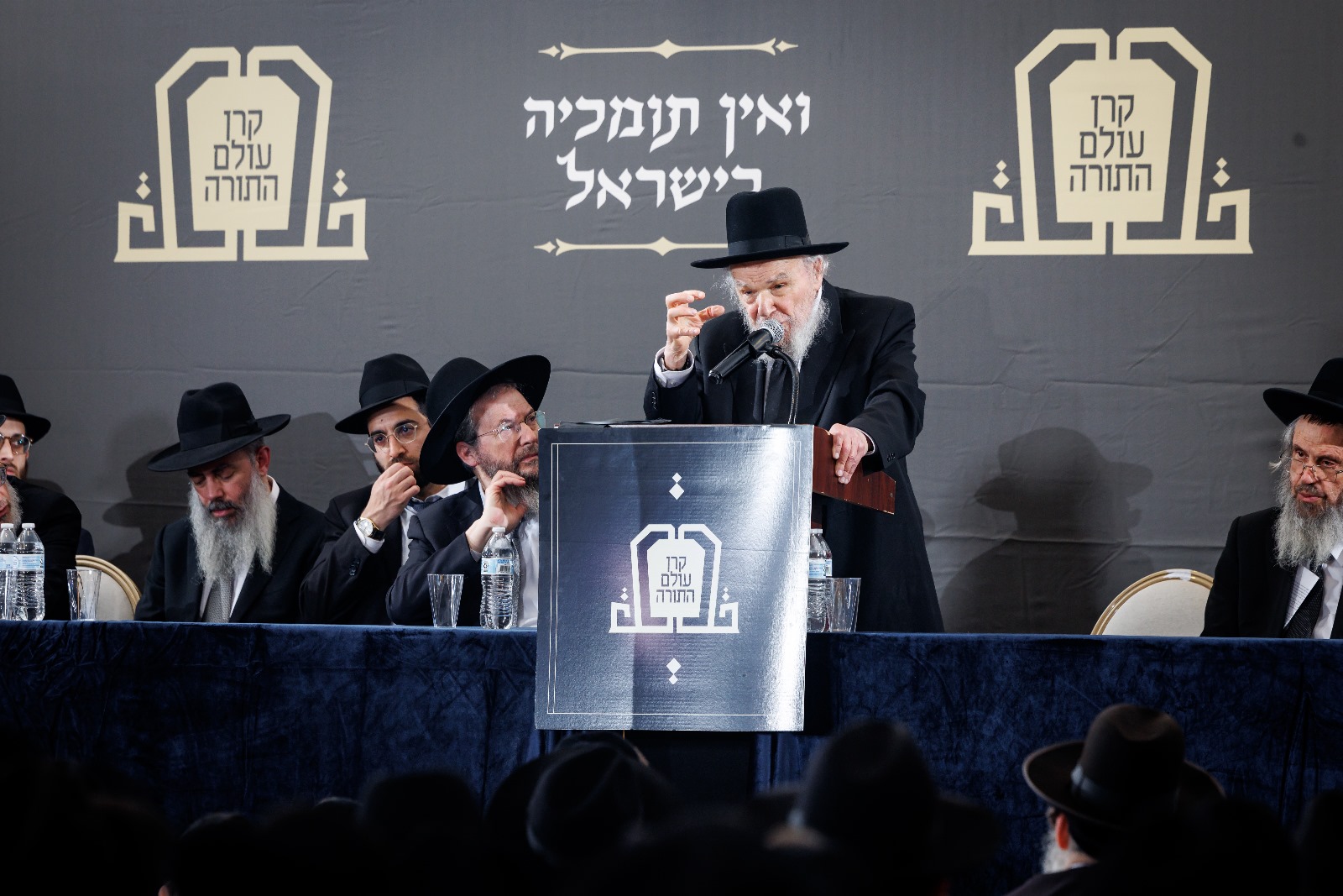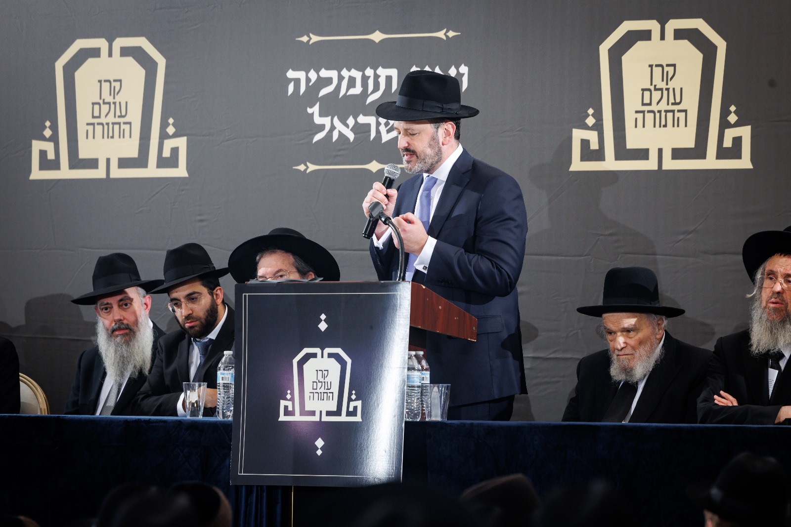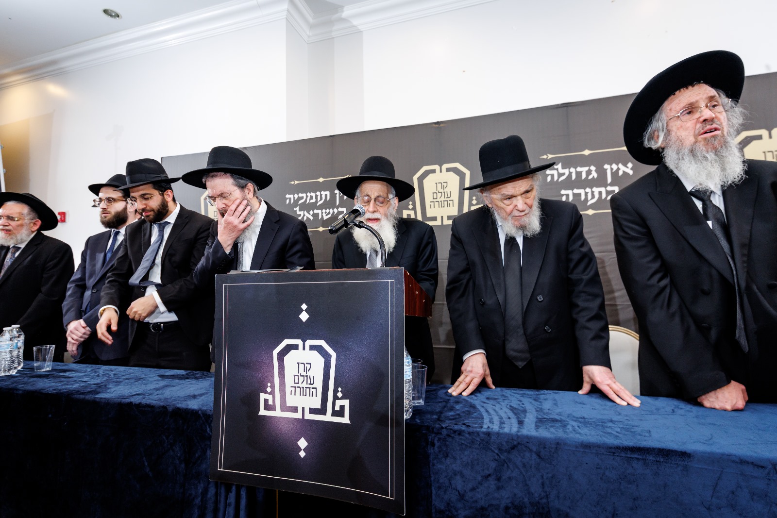 Opening remarks were delivered by the evening’s emcee, who exclaimed: “Gedolei Yisroel—many of them elderly—have been traveling nonstop for over a week. Why? Because they have hefkered themselves for Torah. They’re not doing this for the few major yeshivos that might survive without help. They’re thinking about the majority of mosdos such kollel in Ashdod with 11 avreichim that would have no way to continue without the Keren. They’re thinking about Klal Yisroel. And now, we have the zechus to stand with them.”