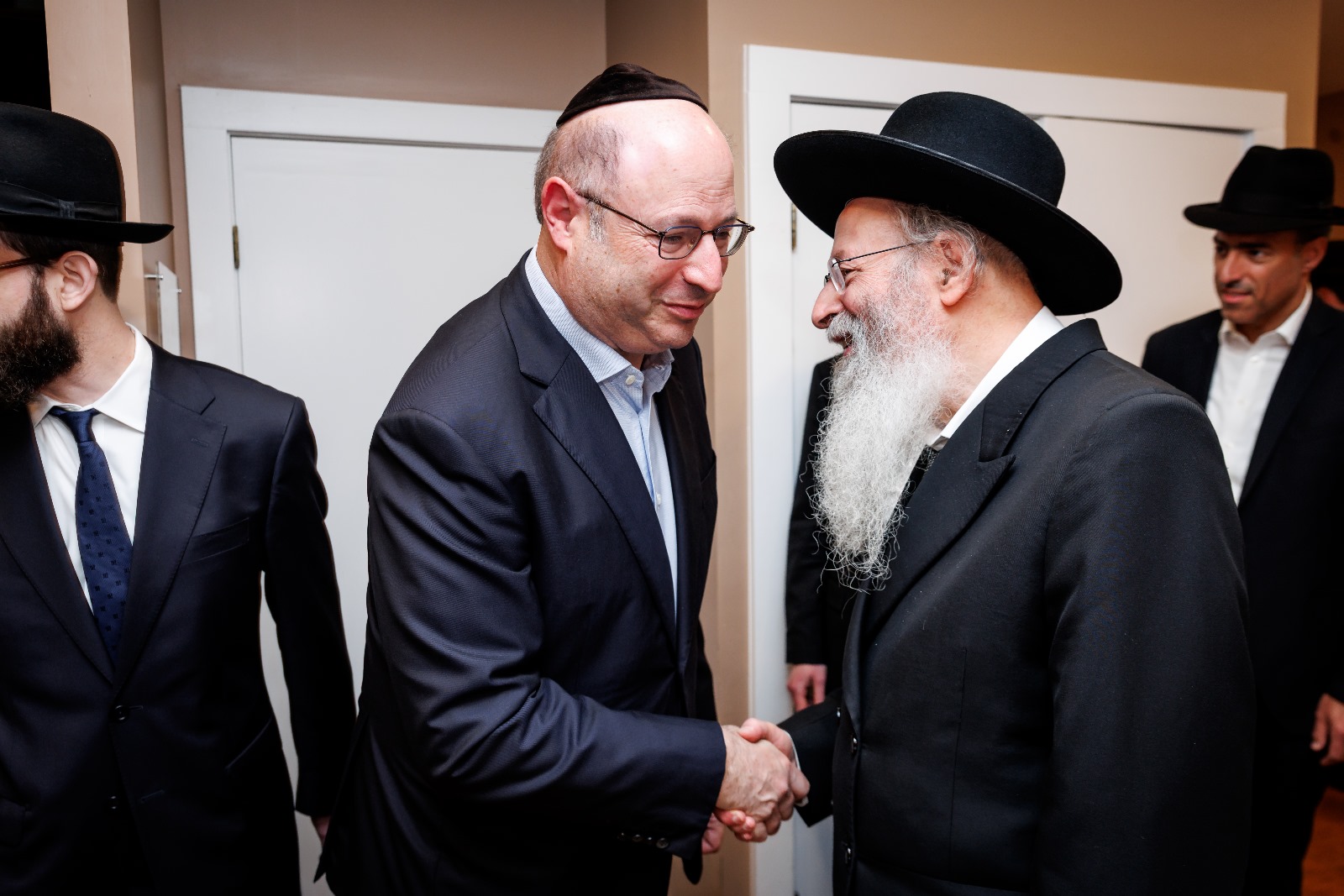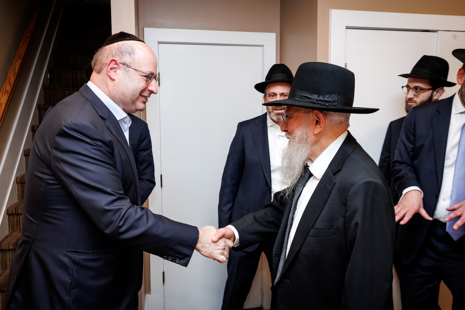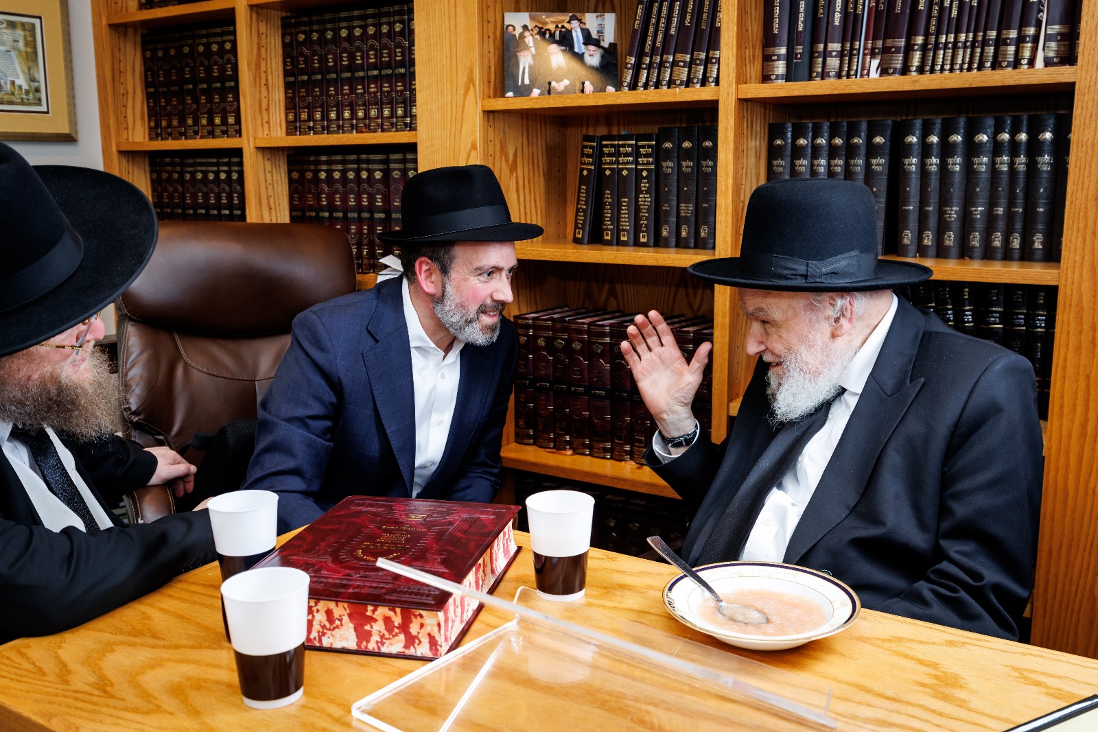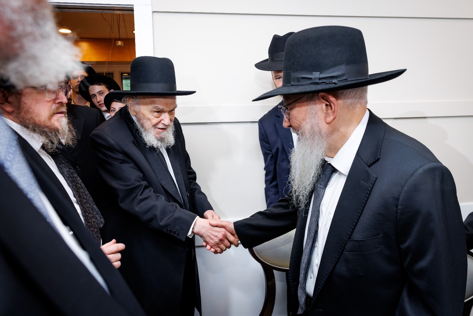 The day began with an intimate gathering at the home of R’ Barry Lebovits, a well-known supporter of Torah. There, Gedolei Yisroel—Harav Moshe Hillel Hirsch shlit”a, Harav Dovid Cohen shlit”a, Harav Meir Stern Shlit”a and many local rabbanim—were welcomed to the city.