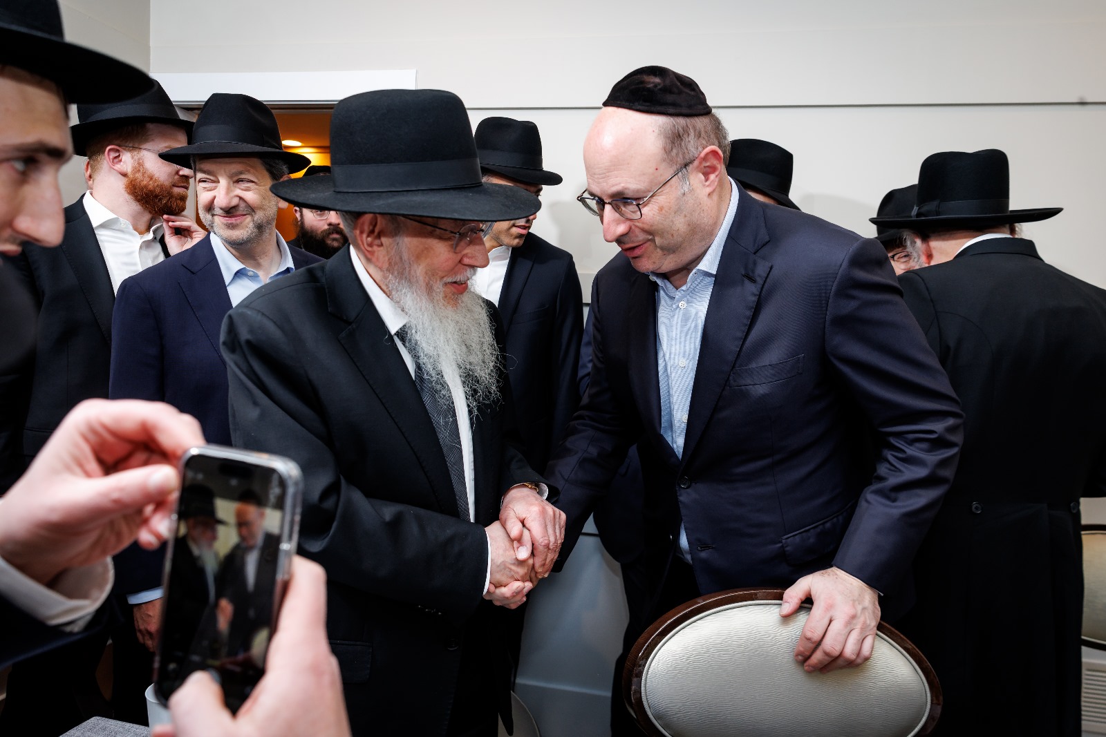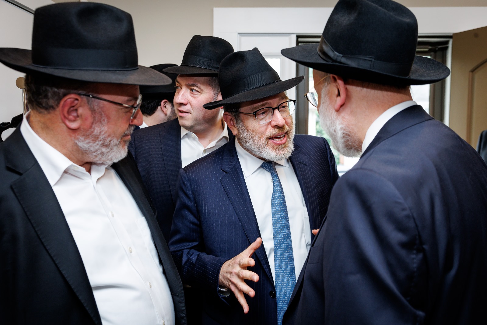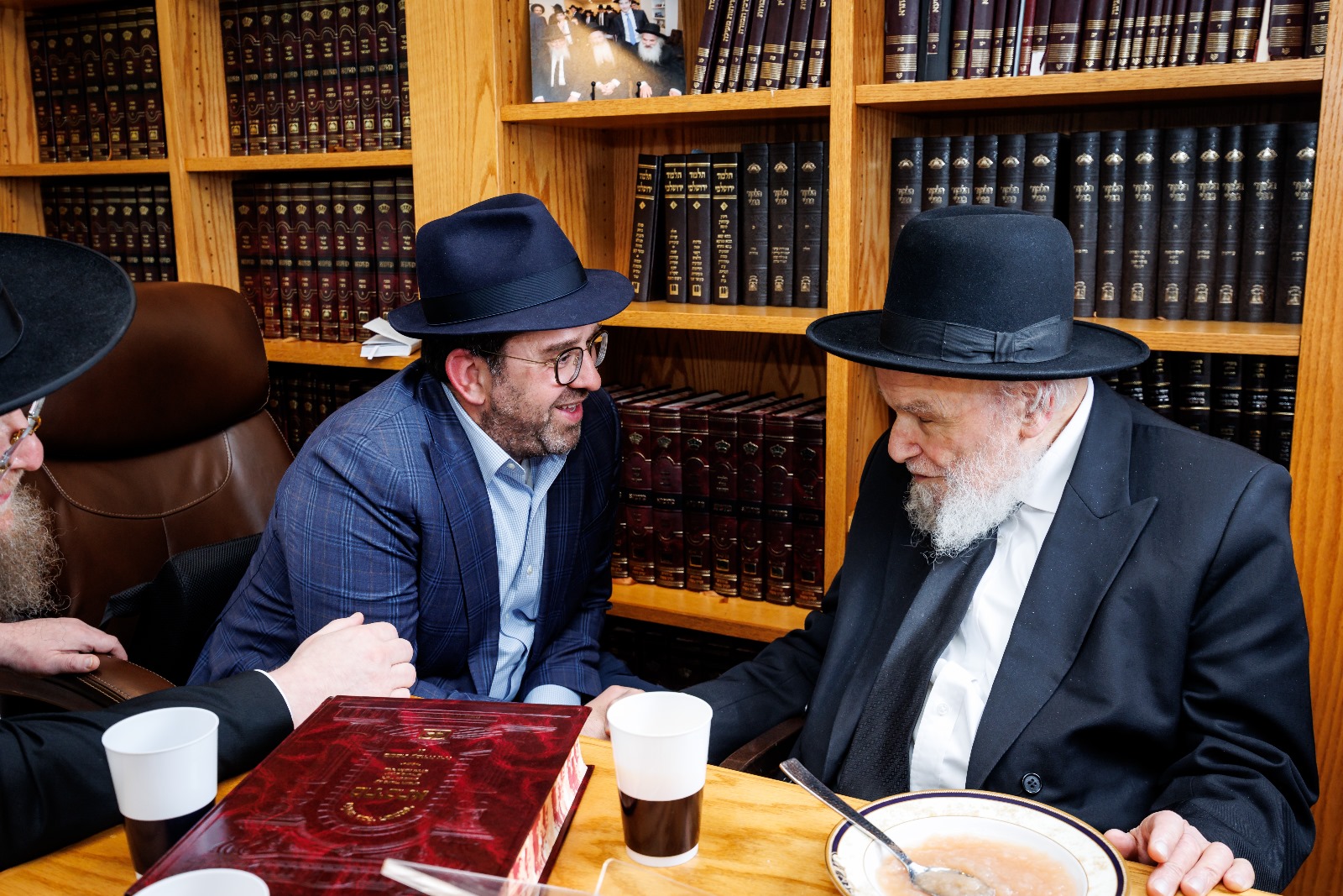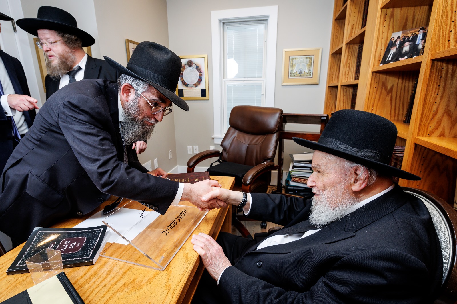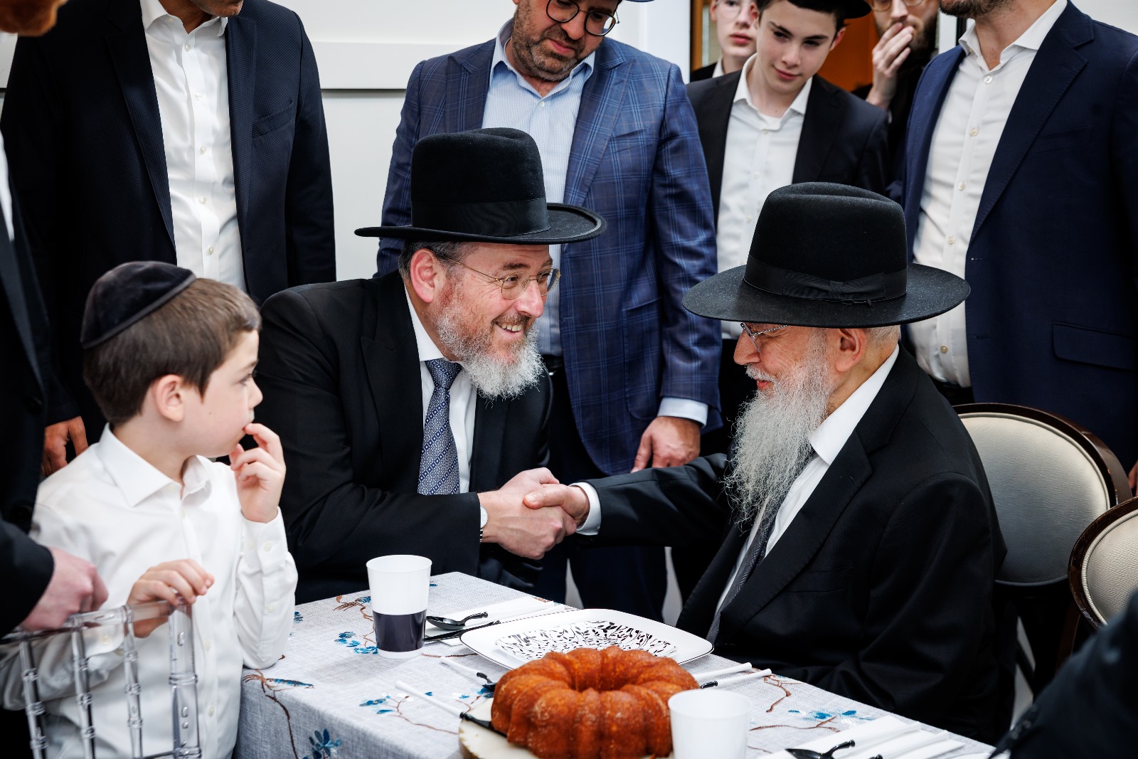 The day began with an intimate gathering at the home of R’ Barry Lebovits, a well-known supporter of Torah. There, Gedolei Yisroel—Harav Moshe Hillel Hirsch shlit”a, Harav Dovid Cohen shlit”a, Harav Meir Stern Shlit”a and many local rabbanim—were welcomed to the city.