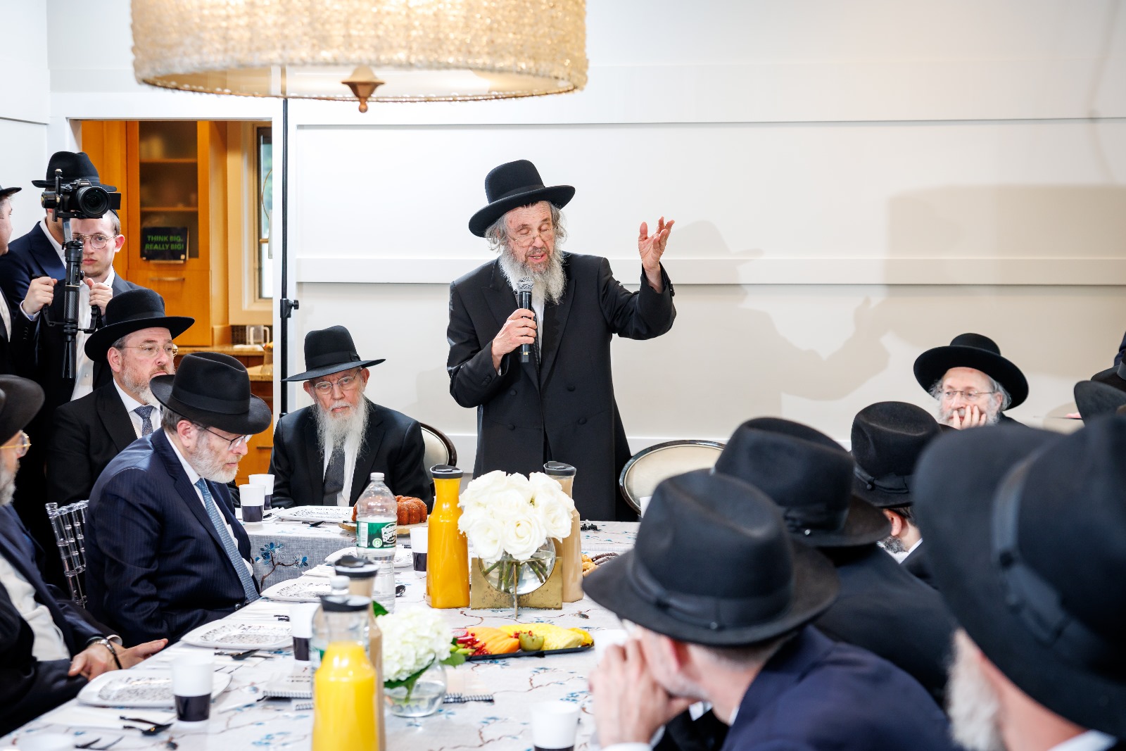 R’ Menachem Rokowsky addressed the guests, quoting the Gemara: “One who hosts a talmid chacham in his home and supports him with his assets, it is as if he has brought the korban tamid.”