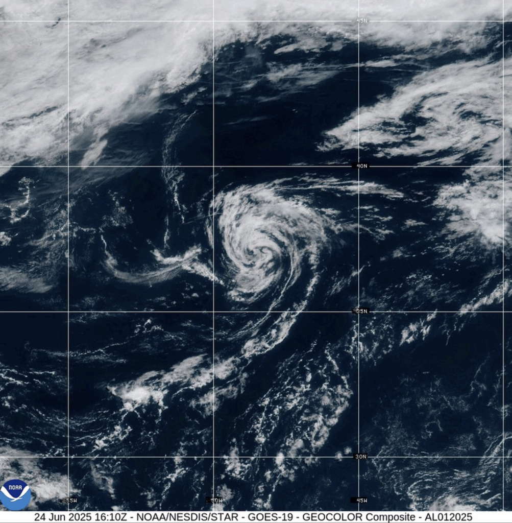 Tropical Storm Andrea, the first tropical storm of the Atlantic hurricane season, has formed, the National Hurricane Center said Tuesday.