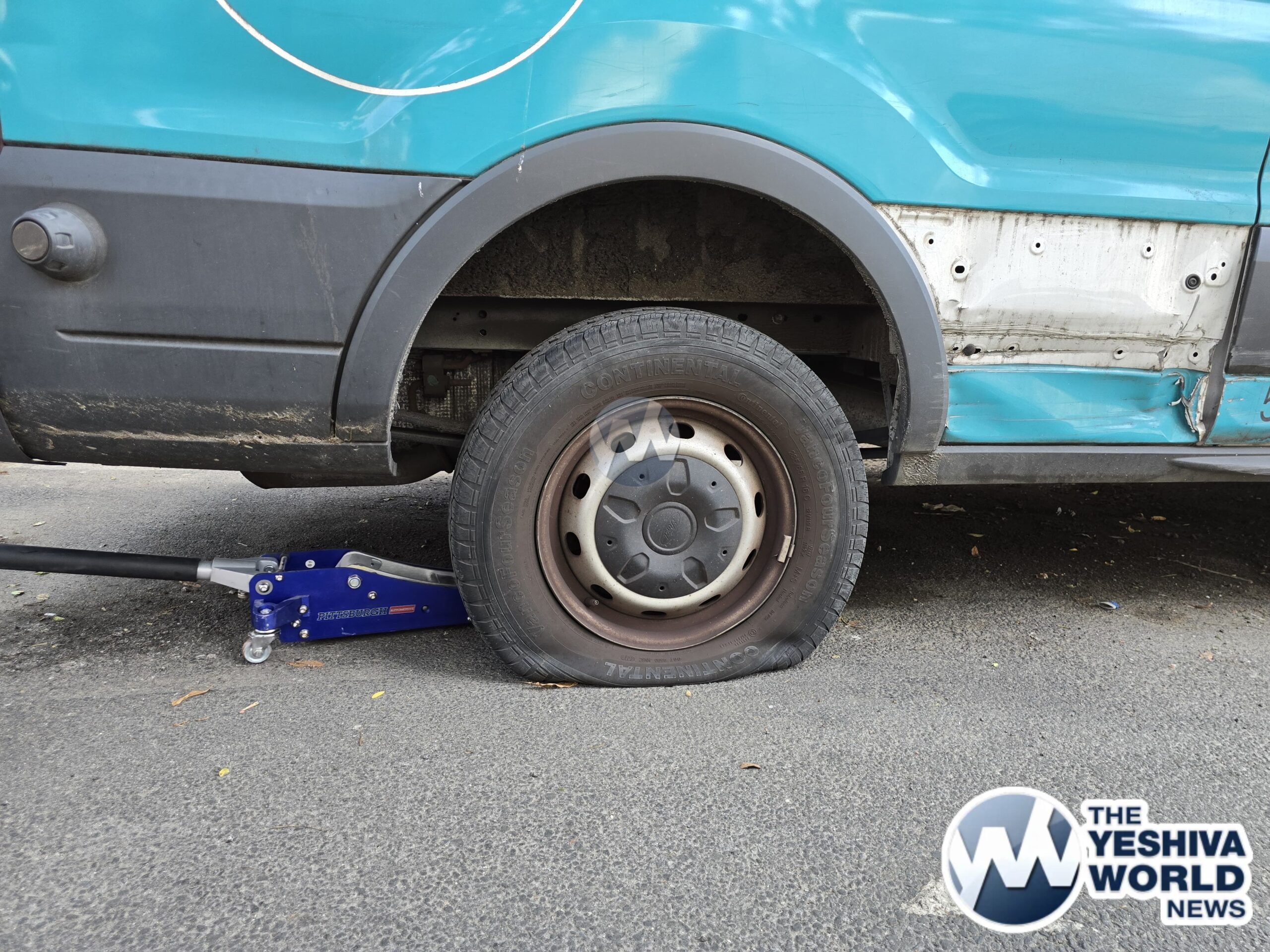 Following the arrest, Boro Park Chaverim volunteers and Quick Fix Mobile Tires responded to assist the victim with his slashed tire.