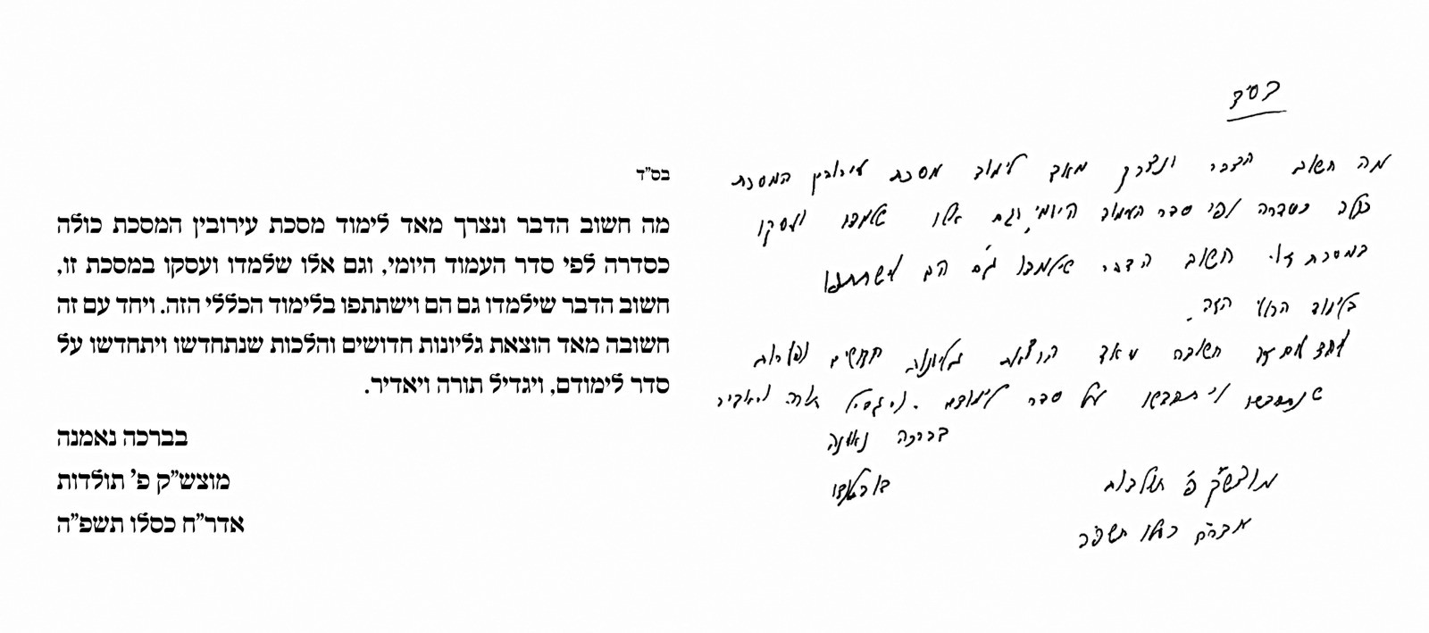 When HaGaon HaRav Dov Landau, shlita, wrote a historic letter this past Rosh Chodesh Kislev encouraging Klal Yisrael to begin learning Masechta Eruvin with the Amud HaYomi Program, the idea of completing the long, difficult masechta seemed like a pipe dream for many.