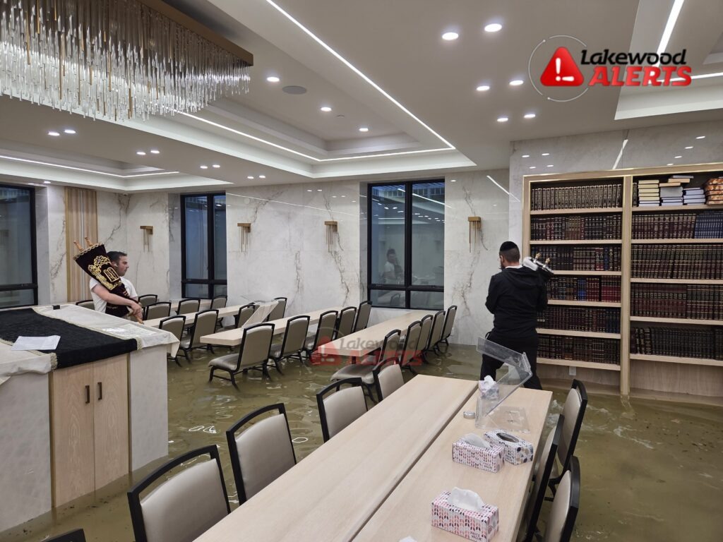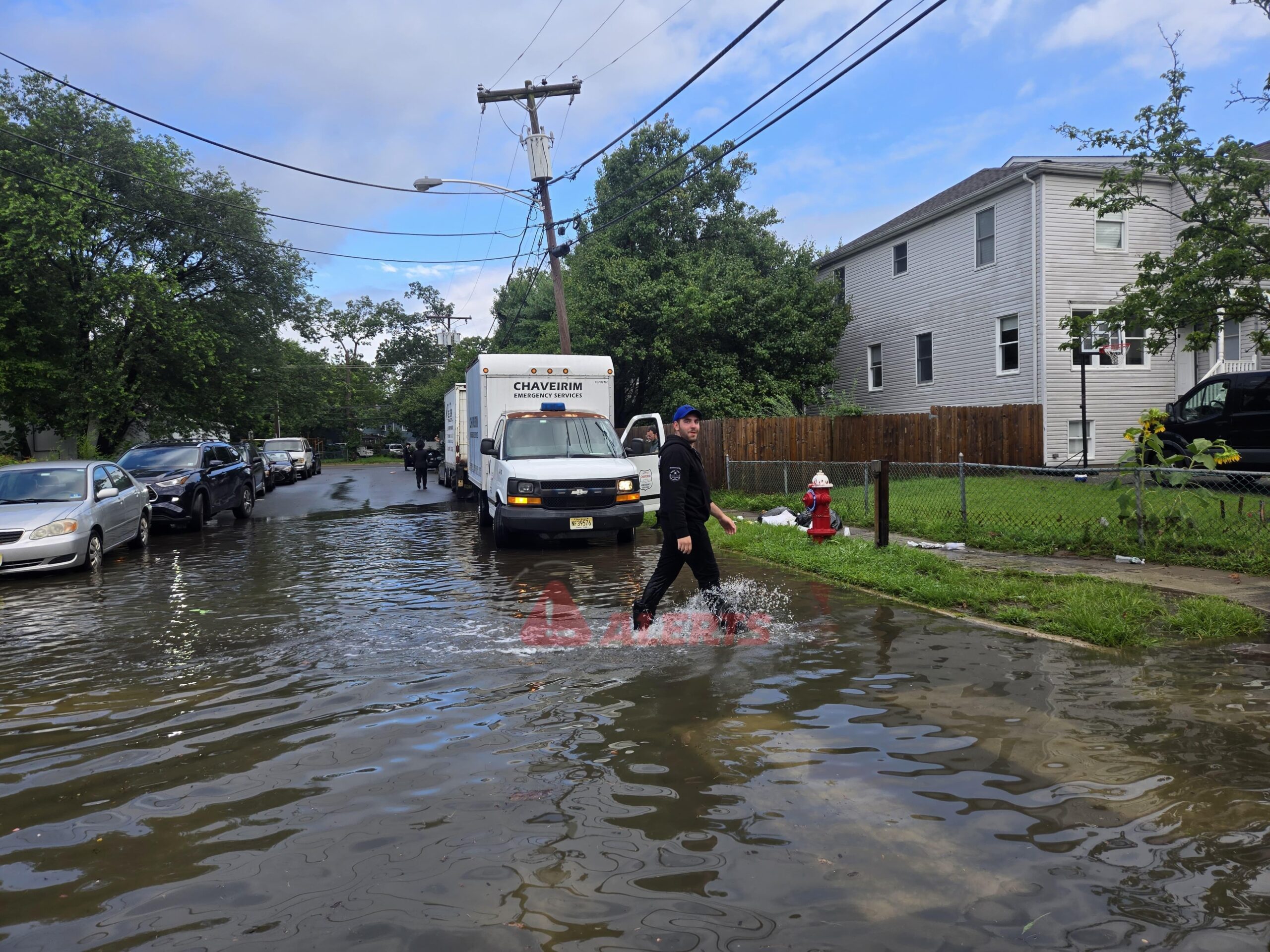 Chaveirim has been working since the flooding began, responding to hundreds of calls from residents trapped or in distress. Its volunteers have carried out multiple rescues, including extrications of individuals trapped inside their vehicles that became trapped in flooded roadways and rescuing sifrei torah from the Doiver Shalom Strettin shul on Squankum Road.
