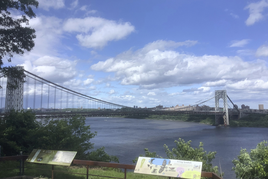 Traffic moves over the George Washington Bridge as seen from Fort Lee, N.J., Saturday, May 24, 2025. (AP Photo/Pablo Salinas)