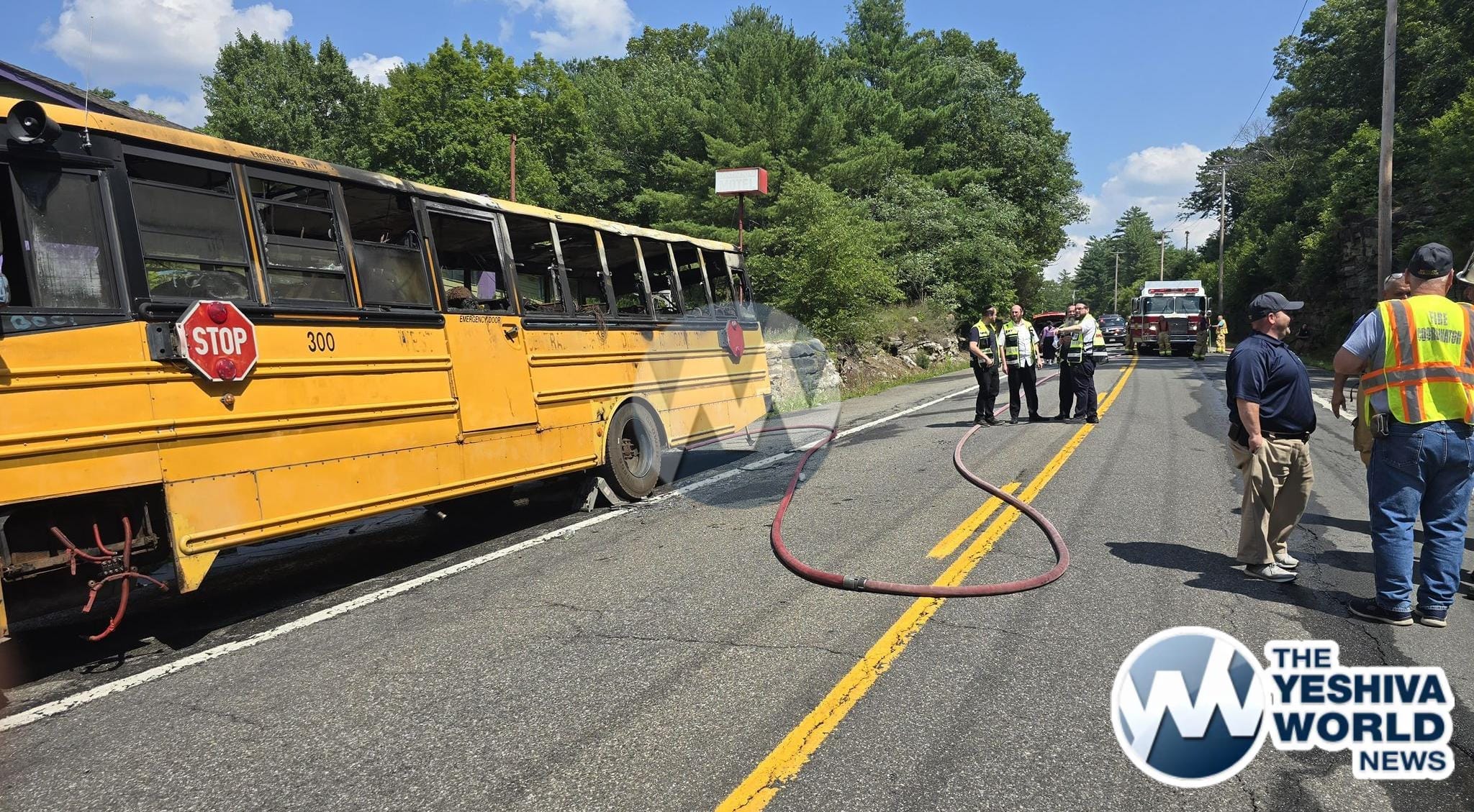 Sources tell YWN that the blaze broke out suddenly while the bus was in motion. Catskills Hatzolah, along with multiple local emergency agencies, rushed to the scene and found the bus engulfed in flames.