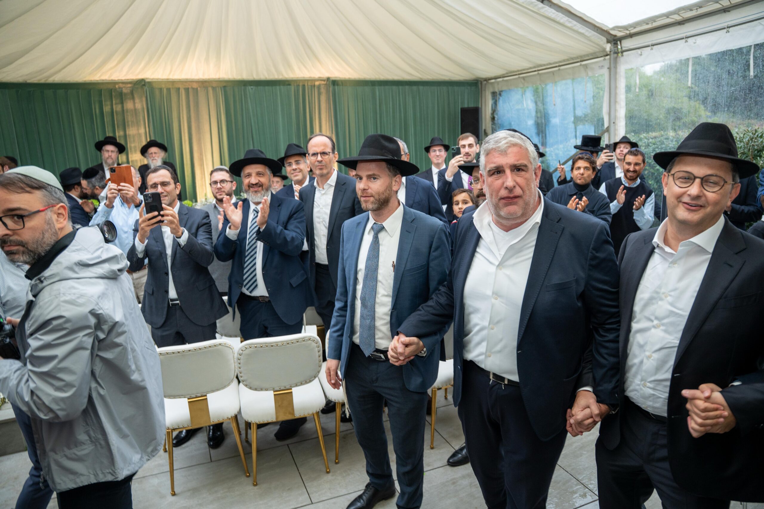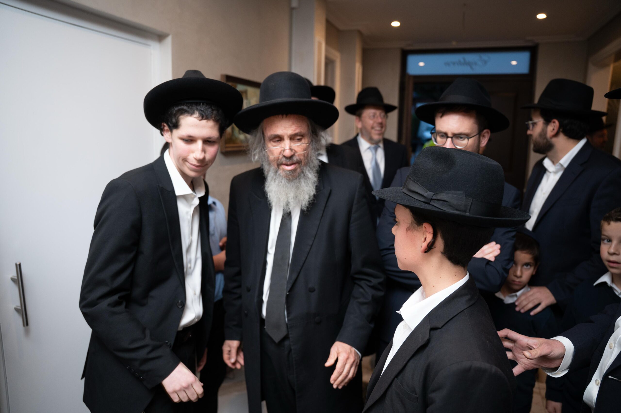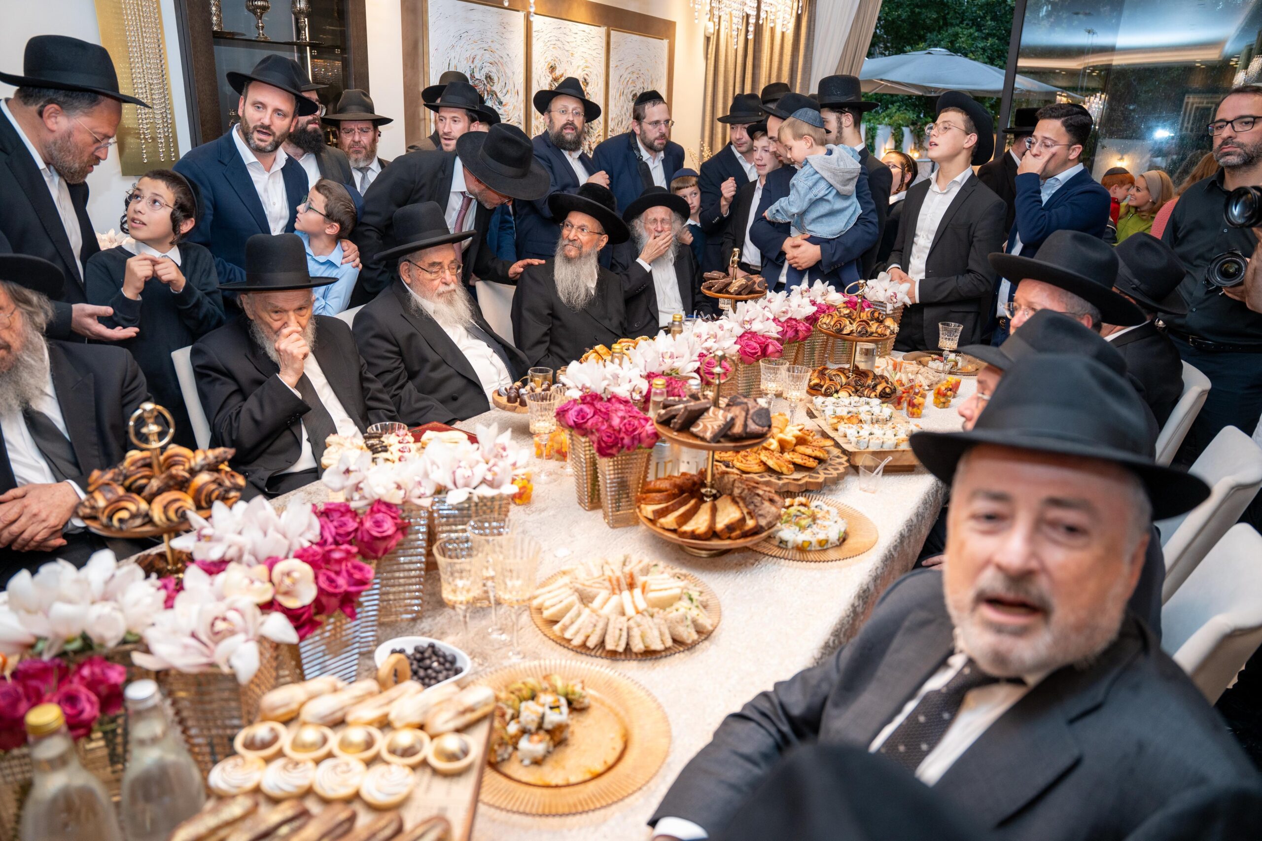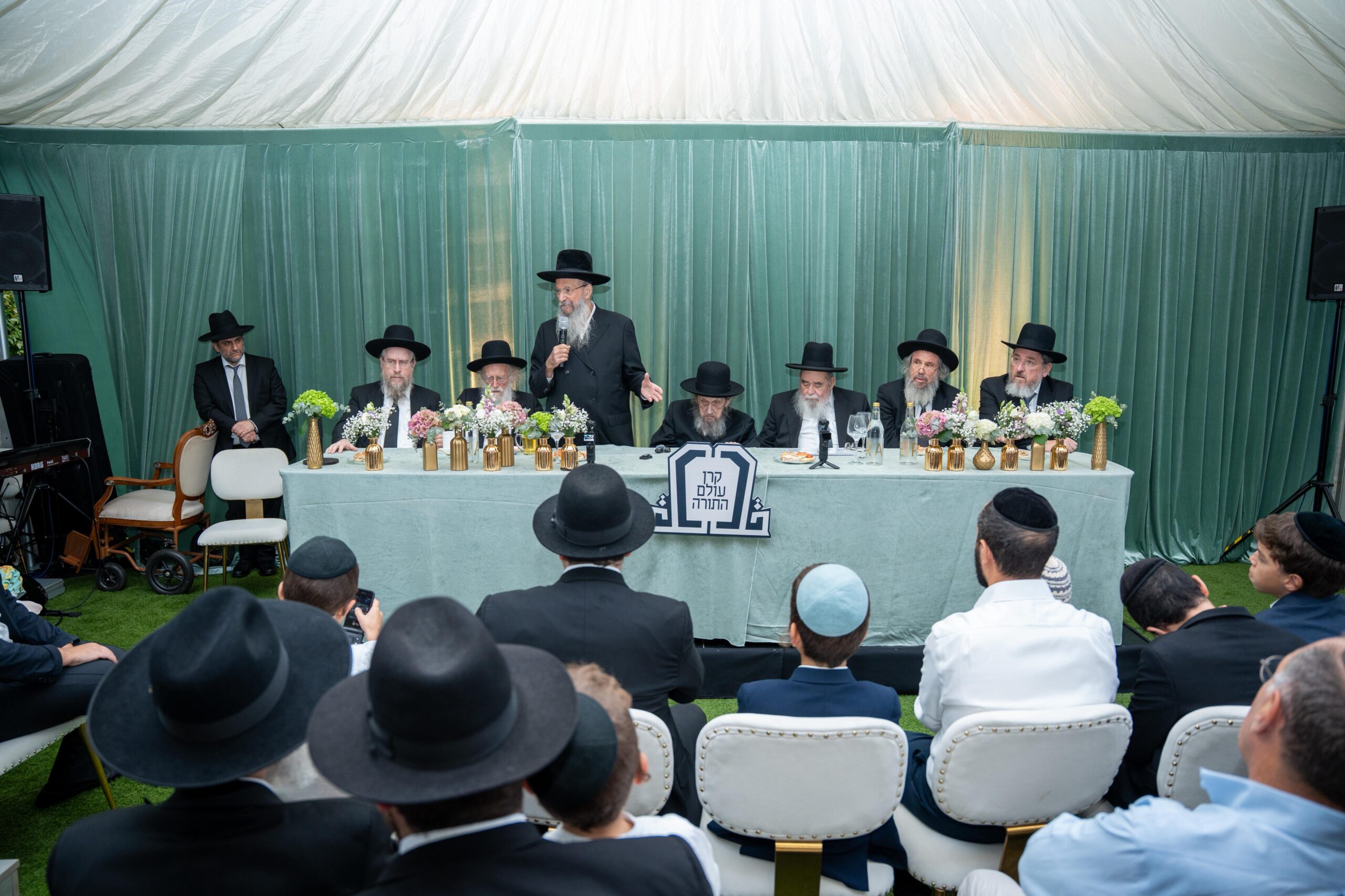 Later, a gathering was hosted at the home of R’ Yisroel Ples, where Harav Moshe Hillel Hirsch shlit”a addressed the gathering, speaking passionately about the unparalleled privilege of mesirus nefesh for Torah. The evening concluded with the entire assemblage singing stirring zemiros of preparation for the Yomim Nora’im.