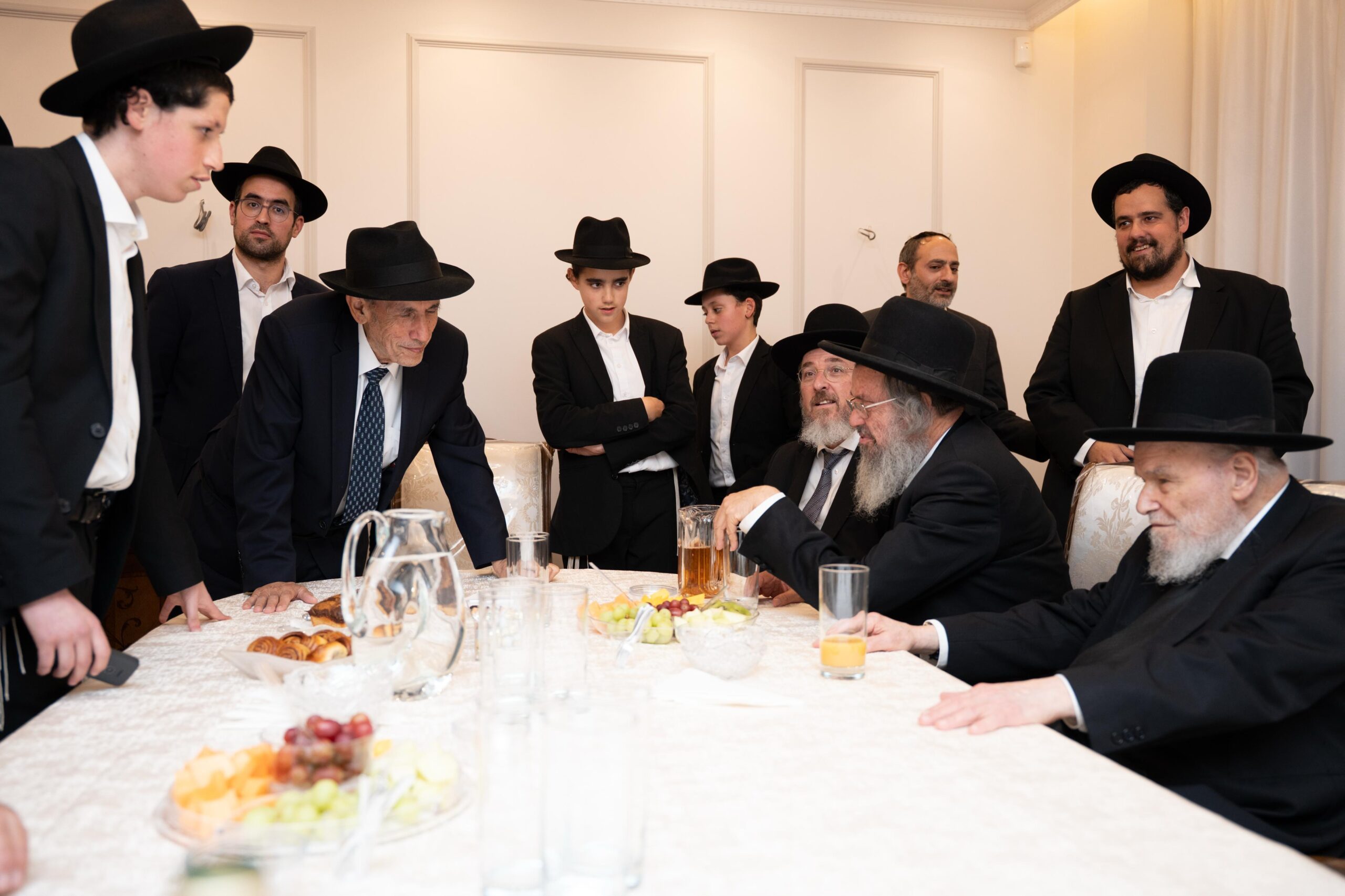 Further events were held throughout the day. At the home of R’ Dovid Halpern, Harav Dovid Cohen shlit”a delivered divrei chizuk, while the gedolim spoke privately with prominent baalei batim about the extraordinary zechus of supporting lomdei torah in Eretz Yisroel.