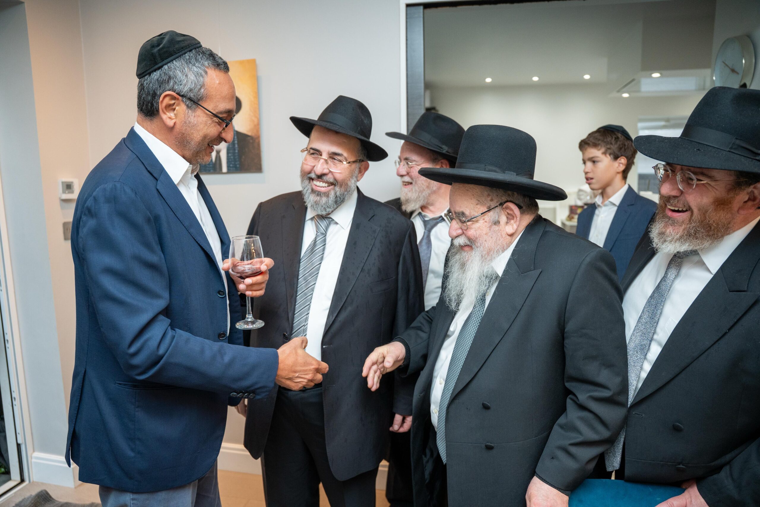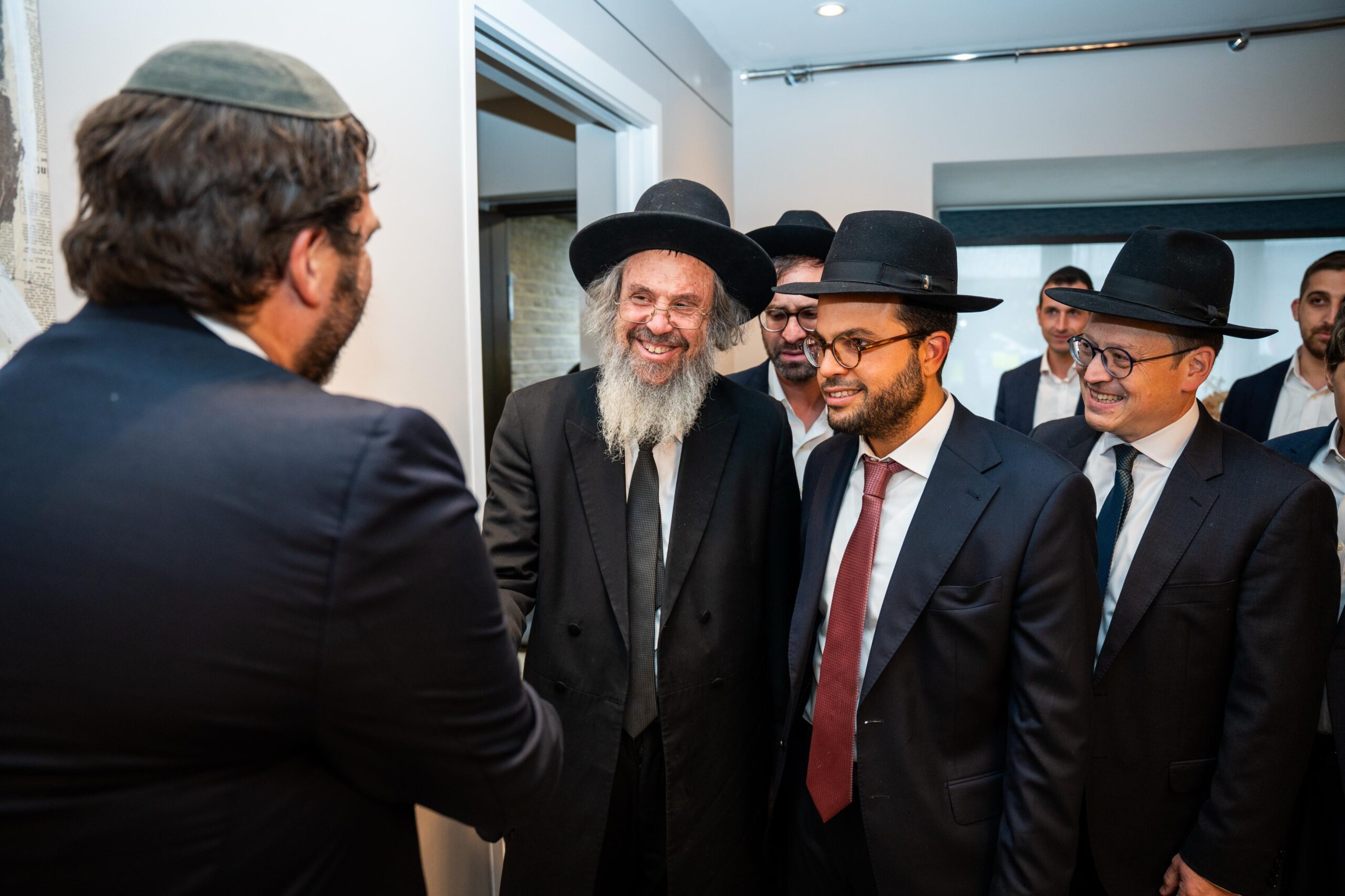 Additional gatherings were hosted by renowned philanthropists including R’ Binyomin and R’ Shlomo Frischwasser, R’ Gabi Ackerman, and R’ Mordechai Landau of Stamford Hill. At each venue, significant commitments were made toward the continued success of Keren Olam HaTorah.