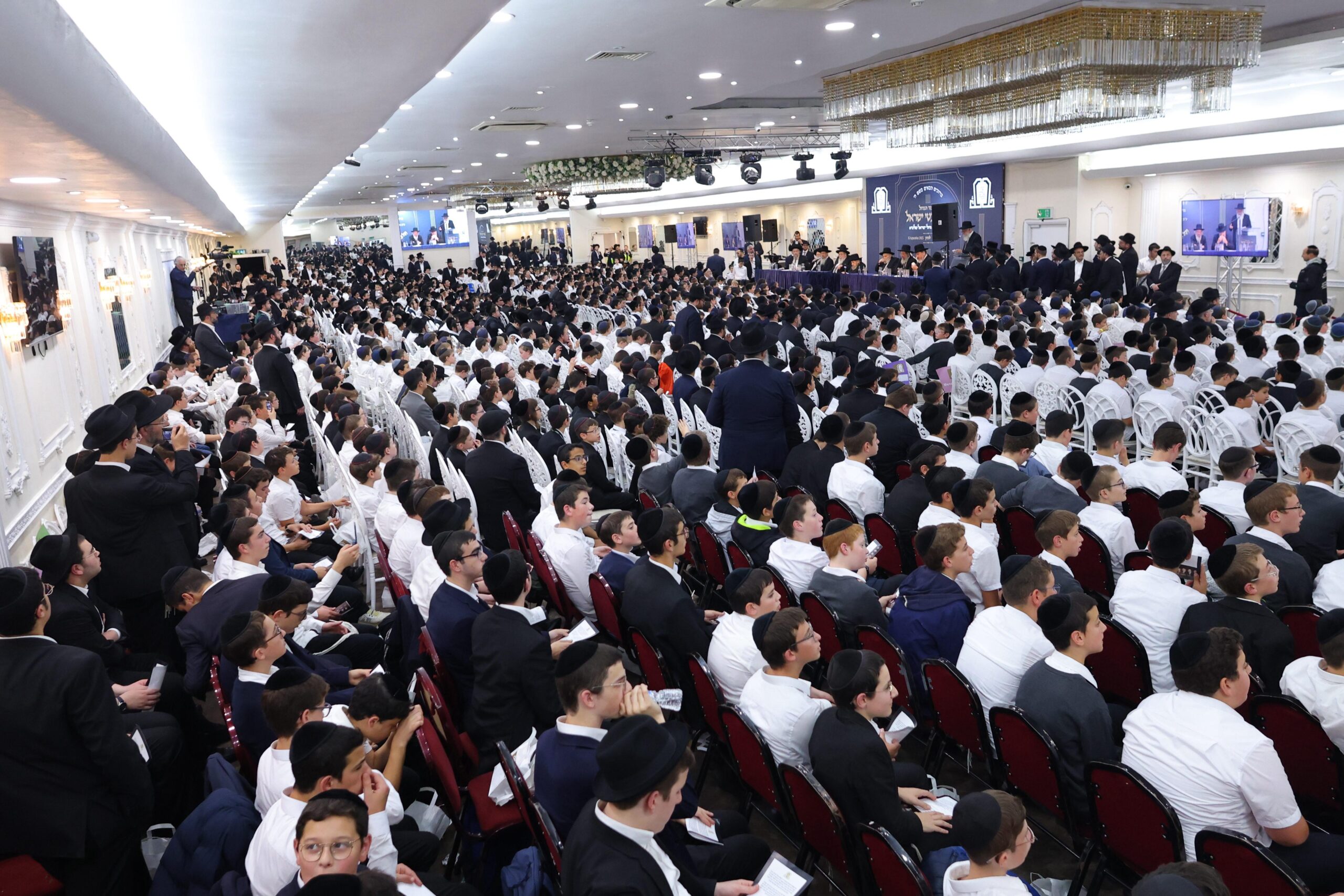 Harav Dov Landau shlit”a addressed the gathering, highlighting the unique capacity of tinokos shel beis rabban to sense the mesikus hatorah. Harav Moshe Hillel Hirsch shlit”a then told the assembled: “Our entire tachlis in this world is to give kavod to HaKadosh Baruch Hu — through heartfelt tefillah, through each word spoken as befitting a ben Torah, and above all, through constant hasmodah in Torah learning.”