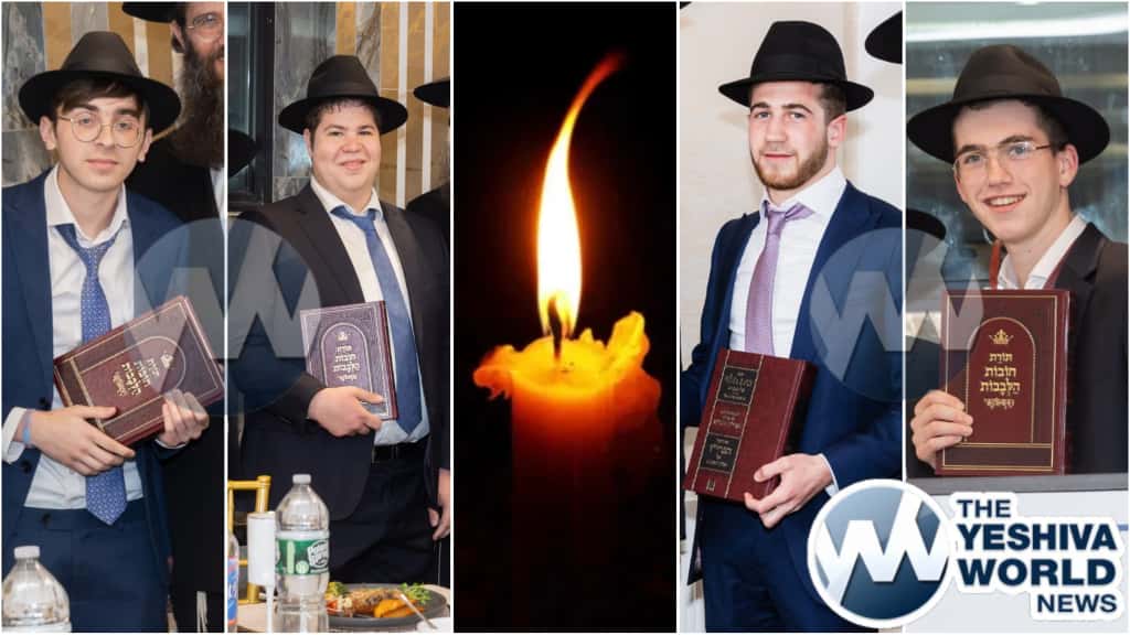 Klal Yisroel was struck this week with an unimaginable tragedy on Sunday when four precious Yeshiva bochurim were tragically killed in a horrific car accident in New Jersey. Three of the bochurim were from Lakewood, and one from South Fallsburg. The pain and grief that swept through the Torah world was indescribable as they mourned the loss of Yaakov Kilberg z”l, 19, Aharon Nosson Lebovits z”l, 18, and Shlomo Abba Cohen z”l, 18 — all from Lakewood — and Chaim Simcha Grossman z”l, 18, of Fallsburg, New York.