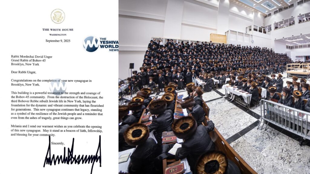 President Trump sent a heartfelt letter to the Bobov-45 Rebbe, congratulating him and the community on the completion of their new Bais Hamedrash in Boro Park.
