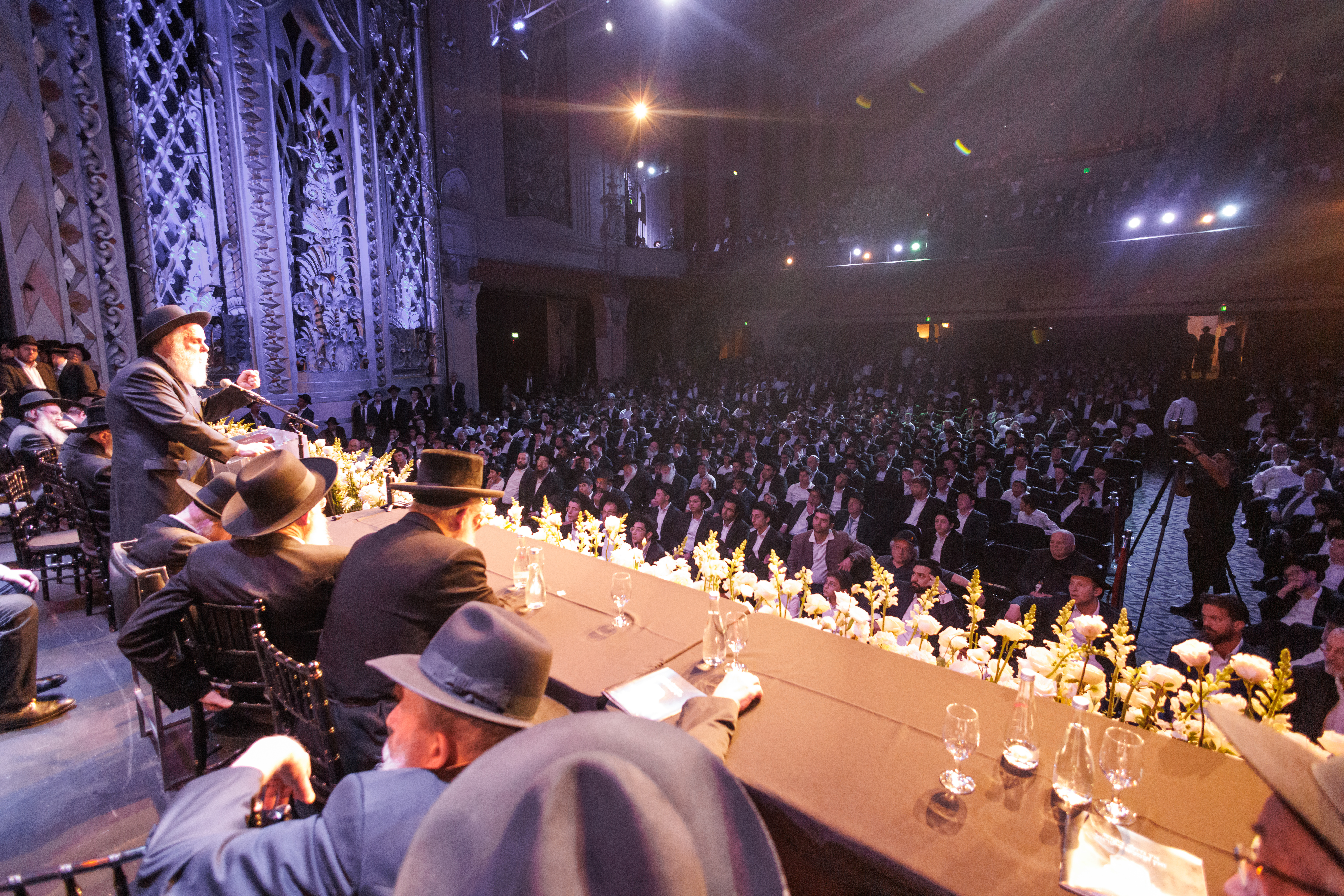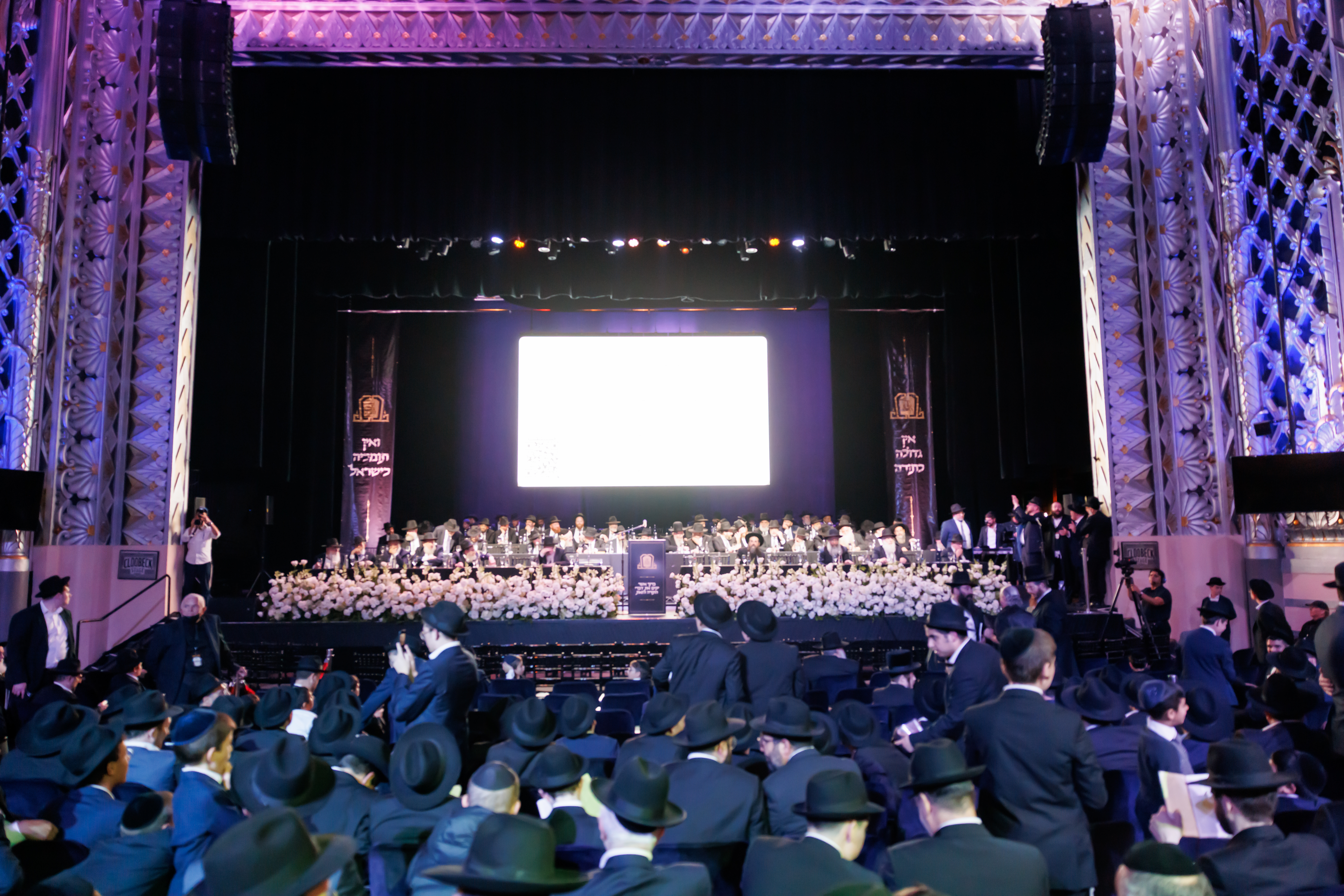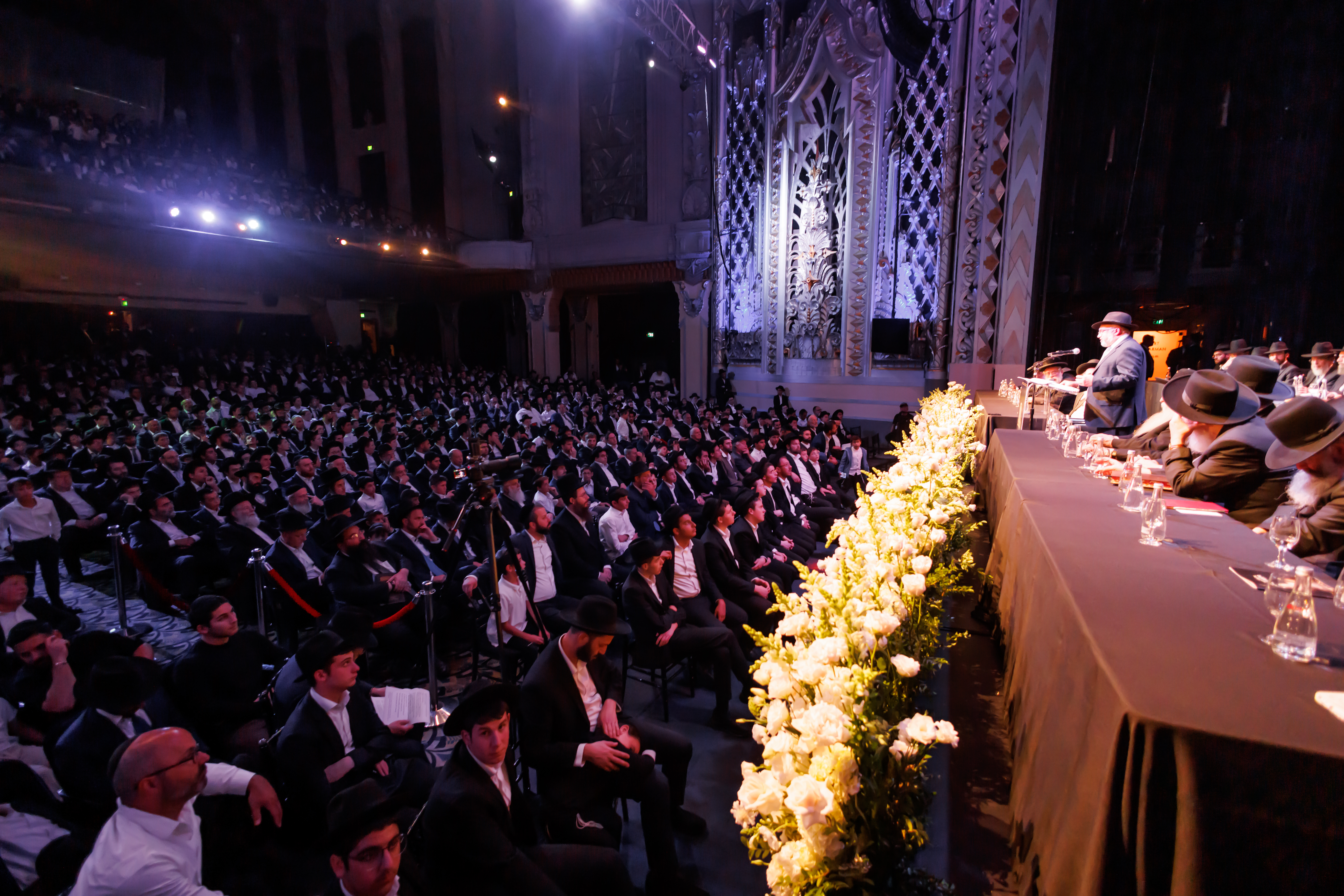 Later that night, a massive community-wide asifah took place at the Saban Theatre, drawing thousands of men, bochurim, and women from every part of the kehilla. The event was one of unparalleled achdus and hisorerus, as the Gedolim addressed the crowd with powerful divrei chizuk.
