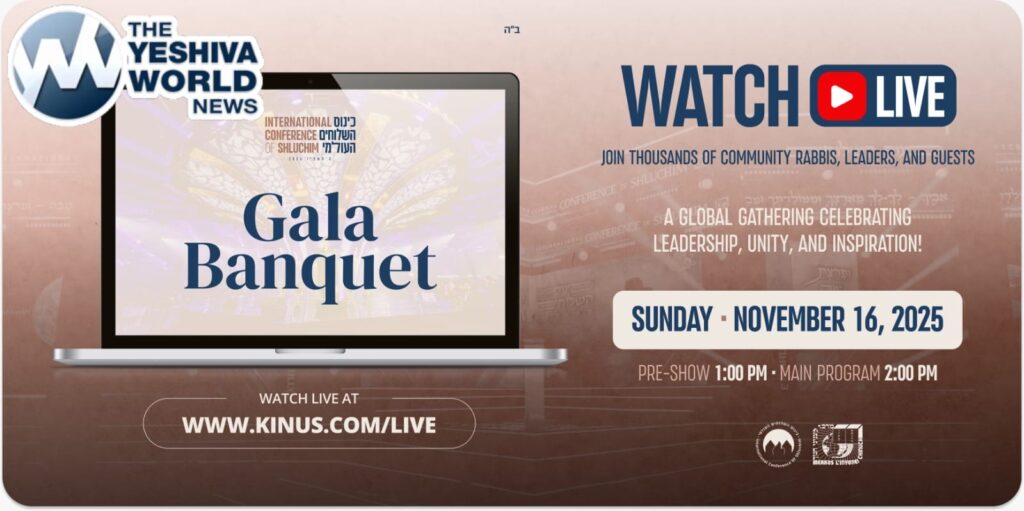 This year, for the 21st year on YWN, tens of thousands of viewers from around the world will be able to view the International Kinus HaShluchim banquet live on a broadcast made possible by the organizers of the Kinus. The live streaming webcast begins at 1:00PM on Sunday, Nov. 15, and is taking place at the The New Jersey Conference and Expo Center in Edison, NJ.
