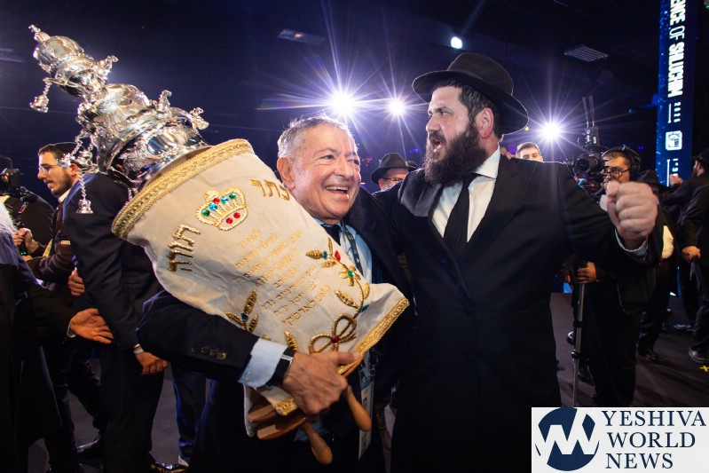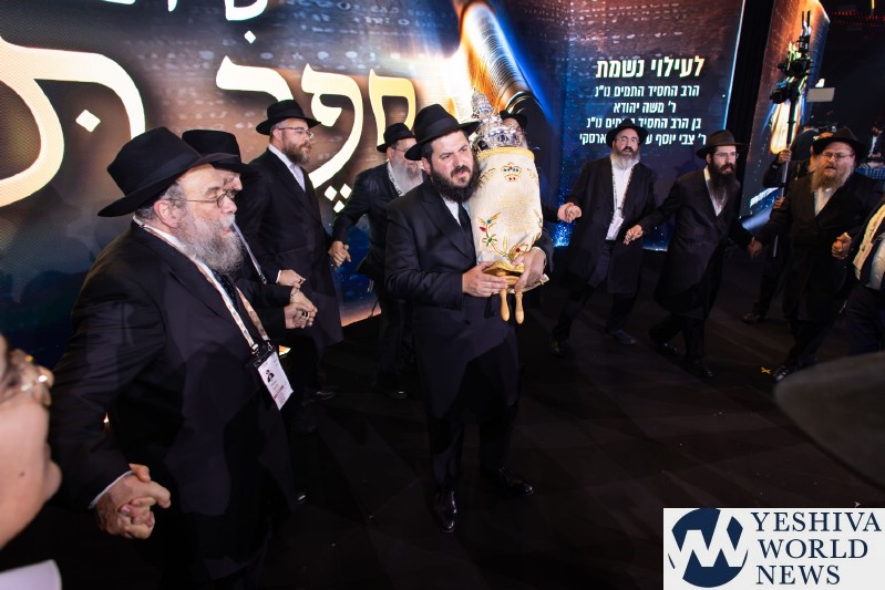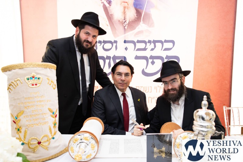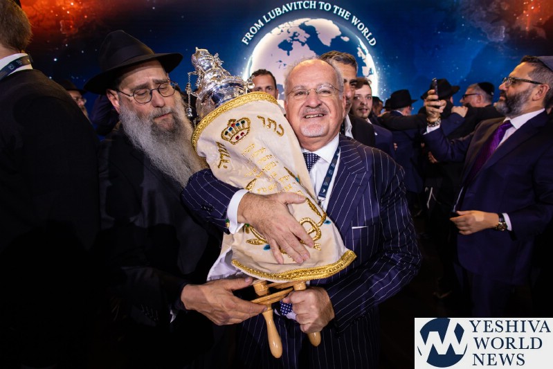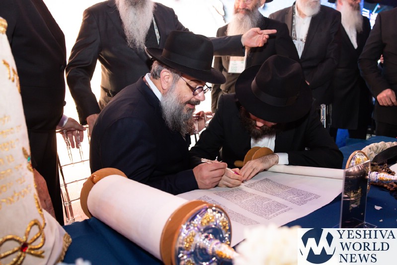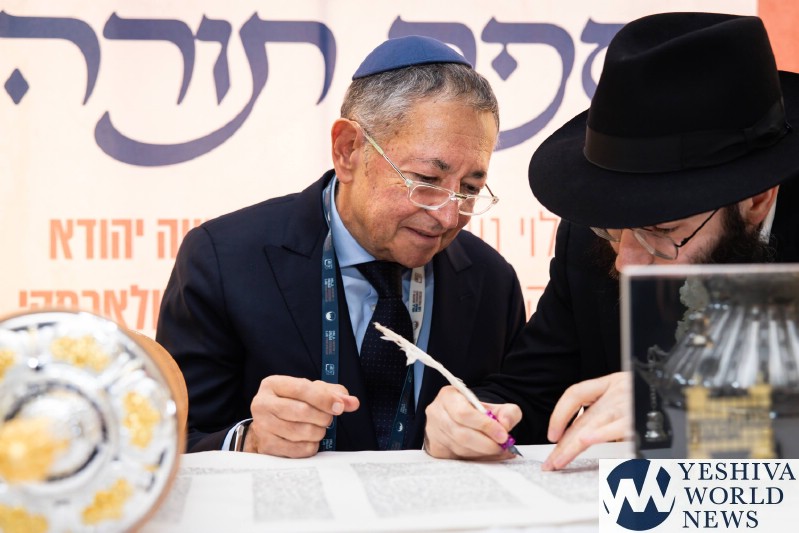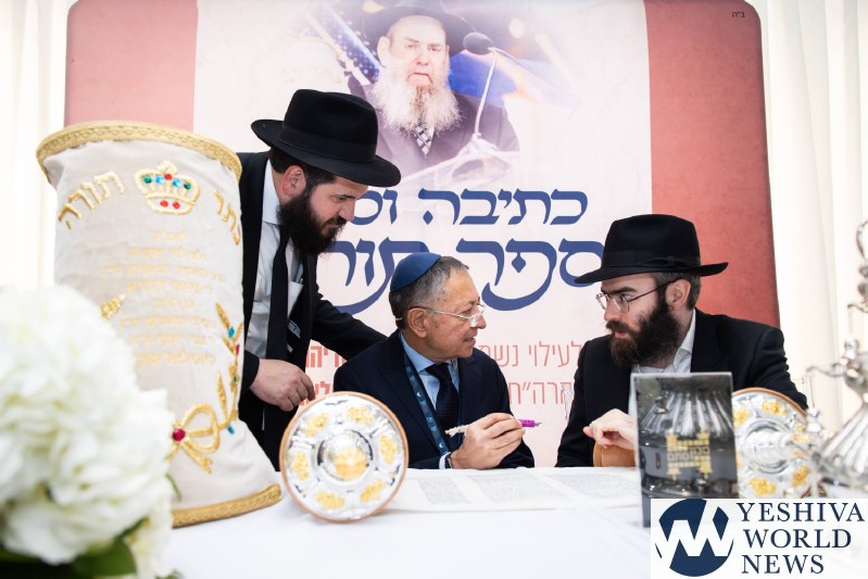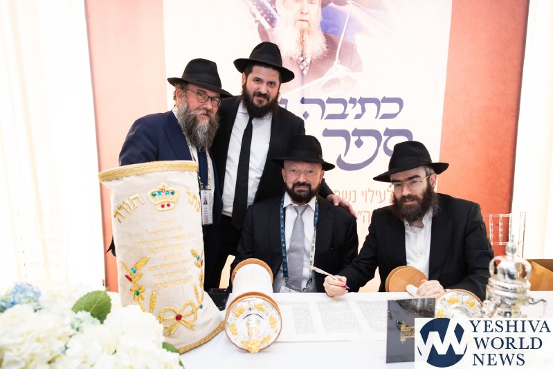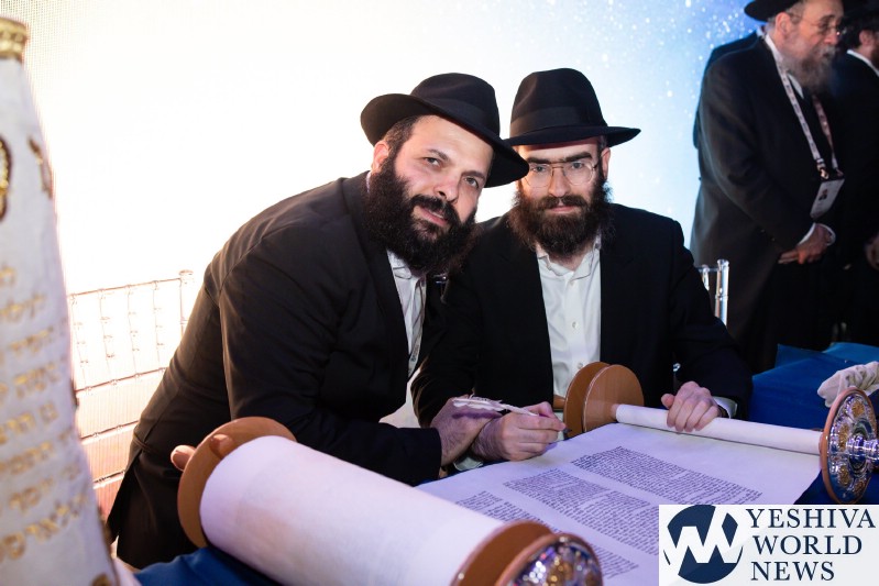 In a particularly moving moment, a Torah scroll, dedicated to the memory of Rabbi Moshe Kotlarsky, was completed by the scribe, assisted by Mr. George Rohr.