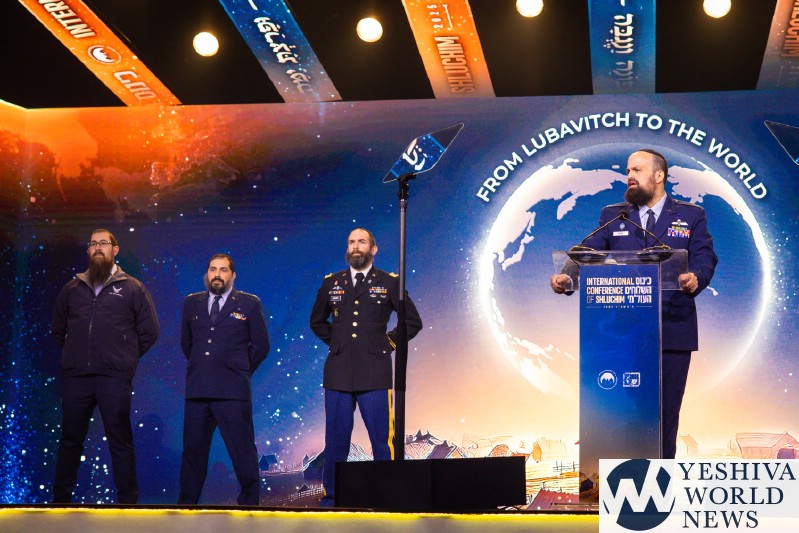 “In the Air Force, we say, service before self,” said Pekar from the podium. “Today, we reflect on the Rebbe’s deep concern for those who served in uniform. He understood that … nothing stands in his way until the mission is accomplished—just like a shliach!” With Chabad emissary-chaplains representing all branches of the armed forces on stage, Pekar presented Craig with a mezuzah for the Jewish home he is establishing with his soon-to-be wife.