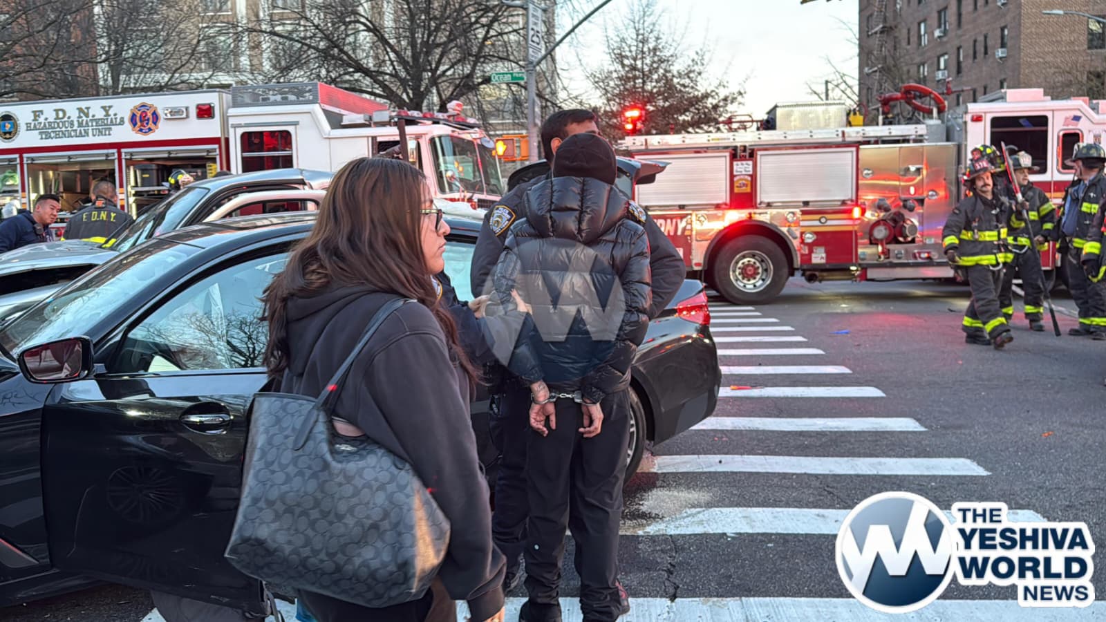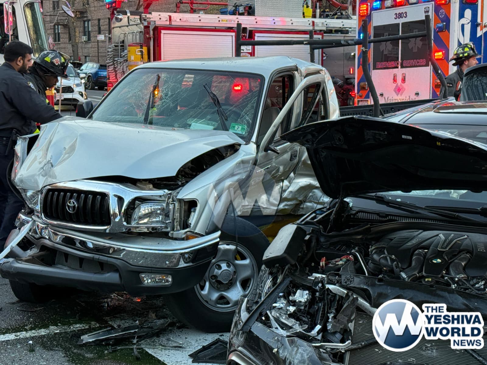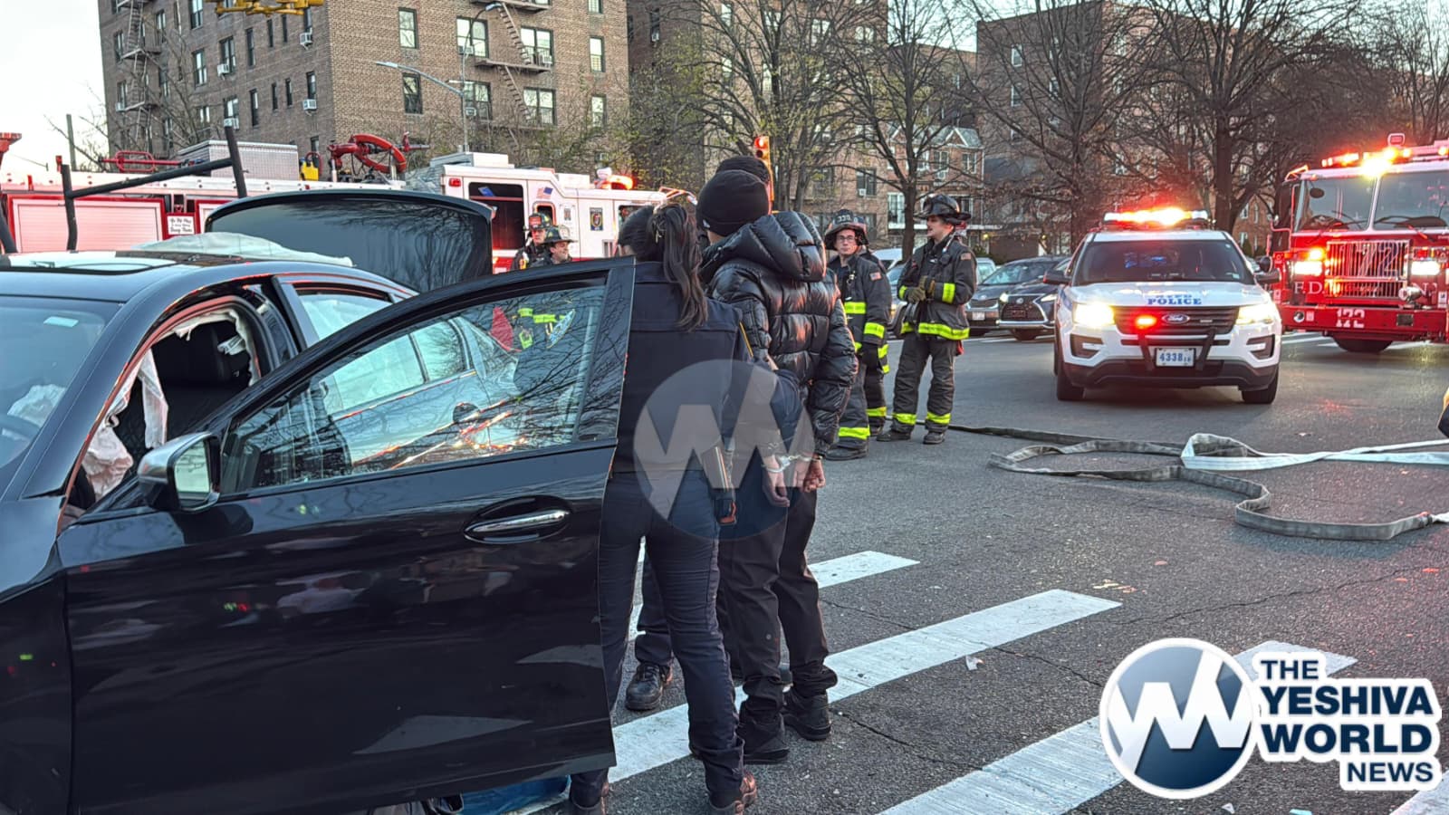 At approximately 3:50 PM on Monday afternoon, Flatbush Hatzolah and other emergency personnel responded to a serious MVA at Ocean Parkway and Avenue L. Three vehicles were involved, including a BMW, another car, and an Access-A-Ride bus. FDNY firefighters were forced to drain the gas tank of one of the vehicles to prevent a potential fire hazard.