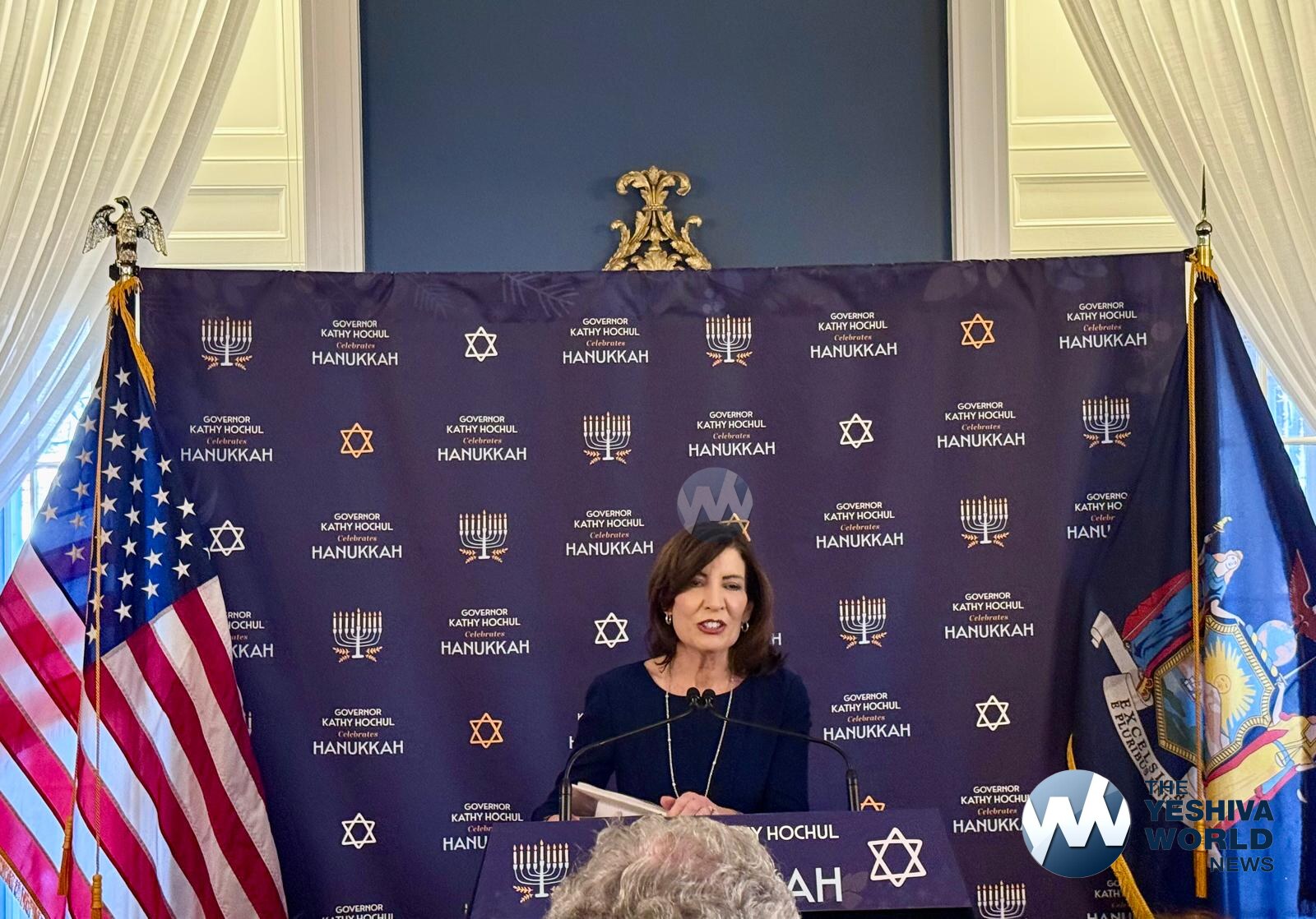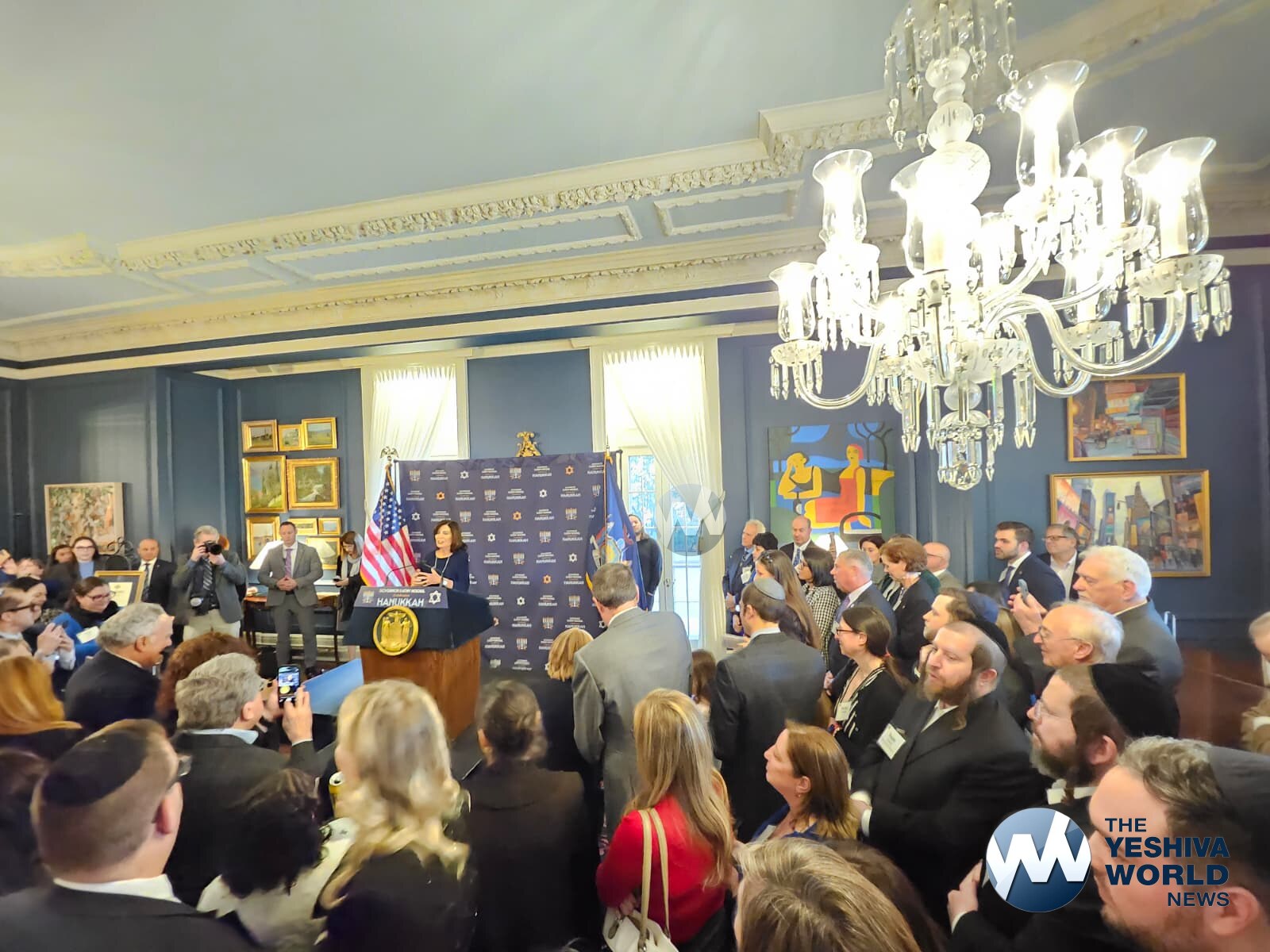 NY Governor Kathy Hochul welcomed Jewish community leaders and elected officials from across New York State to the Executive Mansion on Monday afternoon for her annual Chanukah gathering.