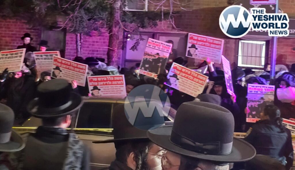 Neturei Karta activists staged a disgraceful protest Tuesday night at 51st Street and 14th Avenue in Boro Park, hurling vulgar slogans at HaRav Moshe Hillel Hirsch shlit”a as guests arrived for the Slabodka Yeshiva dinner.