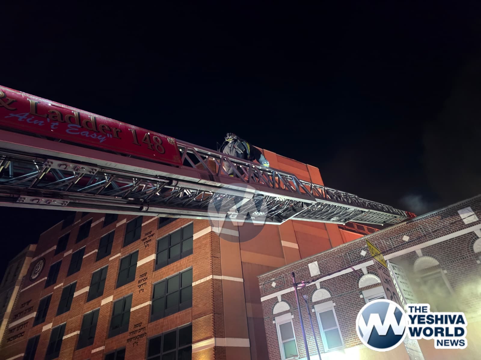 UPDATE: FDNY units have remained on scene since the initial fire at the Boro Park Matzah Bakery on 36th Street. Around 5:00 AM, heavy flames flared up again, prompting firefighters to continue saturating the building with large volumes of water as conditions worsened.