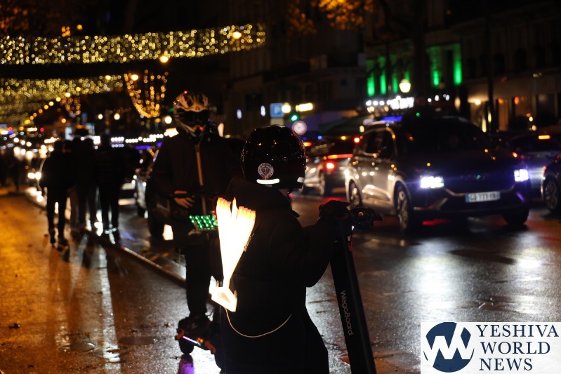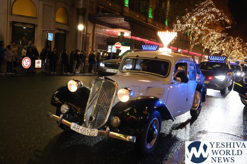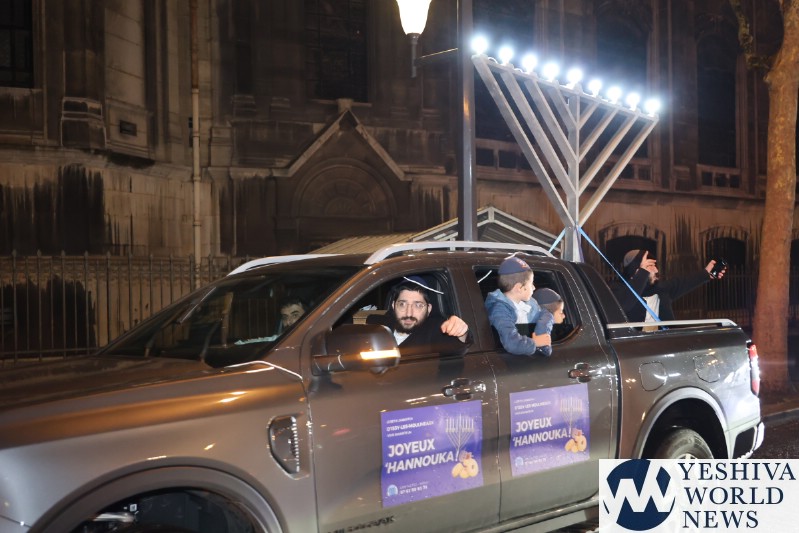 To mark the Yom Tov of Chanukah, a special vehicle parade was organized Sunday in the heart of Paris, with cars traveling and parking in a single lane at Place du Châtelet, continuing along Boulevard de Sébastopol.