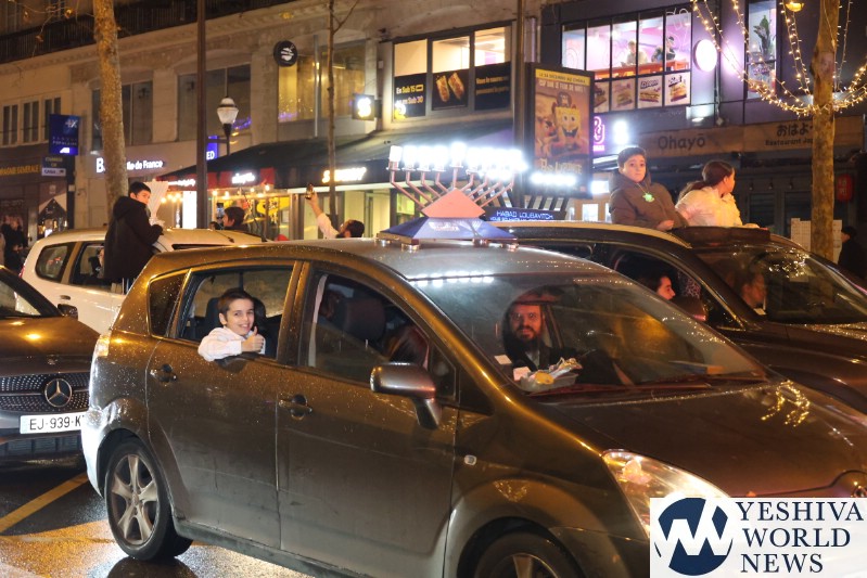 VIDEO & PHOTOS: Chanukah Car Parade Held In Paris Under Direction Of Rabbi Mendel Azimov