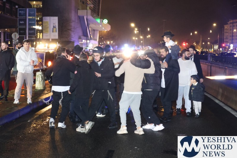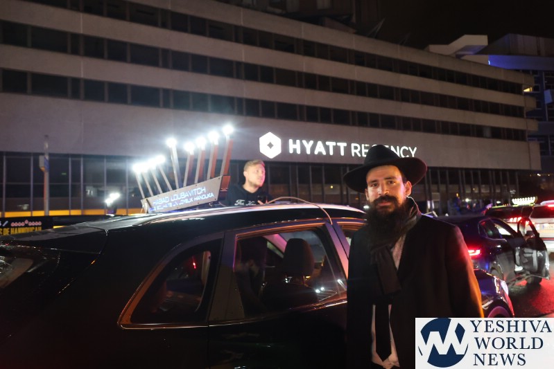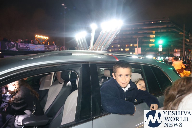 The unique Chanukah celebration was held under the direction of Rabbi Mendel Azimov and drew attention from passersby as the line of vehicles created a public display honoring the Yom Tov and spreading the message of the Chag in the public square.