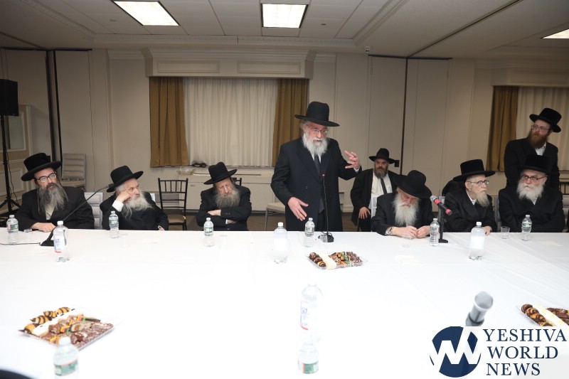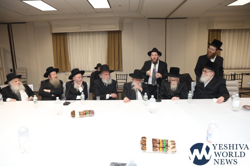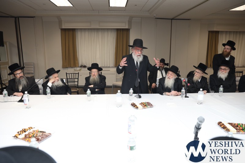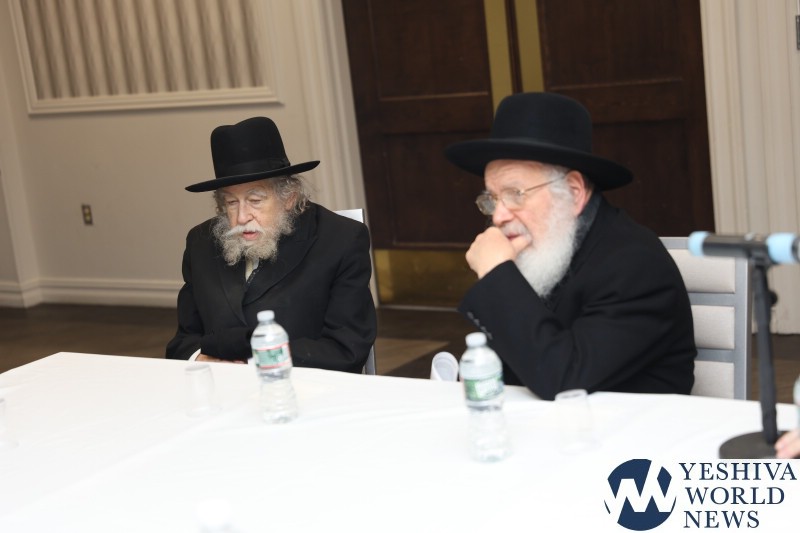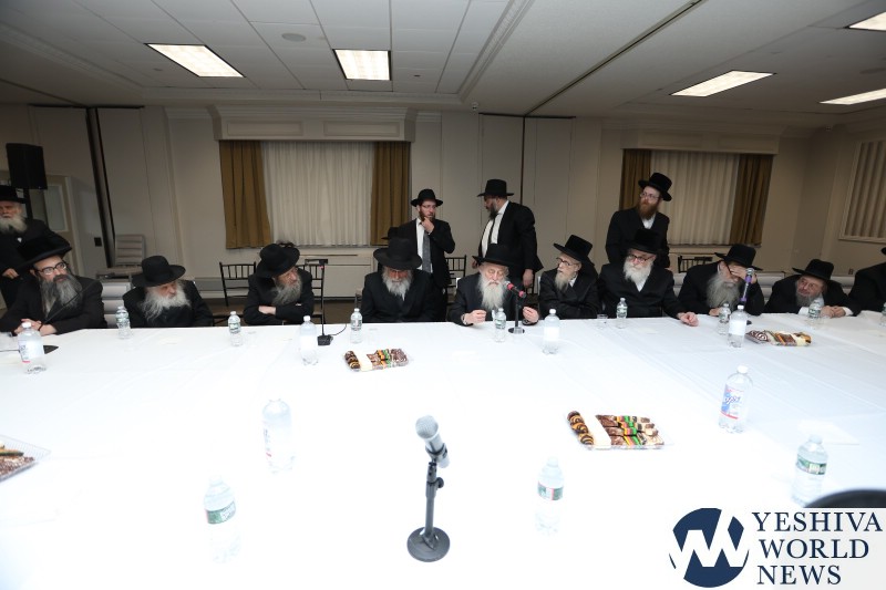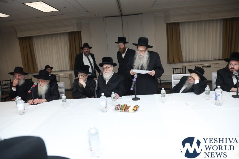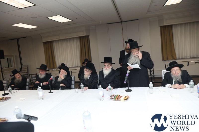 Also present were the roshei yeshiva of Bais Medrash Govoah in Lakewood—Rav Malkiel Kotler, Rav Yeruchem Olshin, Rav Dovid Schustal, and Rav Yisroel Neuman—as well as Rav Avrohom Bromberg, Rosh Yeshiva of Yeshivas Shaar HaTalmud; Rav Yisroel Ehrlich, Rosh Yeshiva of Yeshivas Mishkan HaTorah; Rav Shmuel Abba Olshin, Rosh Yeshiva of Yeshiva Gedolah of Hillside; Rav Simcha Bunim Paler, Rosh Yeshiva of Yeshivas Mekor Chaim; Rav Dovid Breslauer, Rosh Kollel of Yeshiva Gedolah Zichron Moshe of South Fallsburg; Rav Eliyahu Yagid, Rosh Yeshiva of Yeshivas Keren HaTorah; Rav Yitzchok Lichtenstein, Rosh Yeshiva of Yeshiva Torah Vodaas; Rav Uri Meir Kanarek, Rosh Yeshiva of Yeshivas Noam HaTalmud; Rav Yaakov Dovid Wasserman, Rosh Yeshiva of Yeshiva Gedolah of Monmouth County; Rav Moshe Pruzansky, Rosh Yeshiva of Yeshivas Chemdas HaTorah; and Rav Moshe Mayerfeld of Monsey.