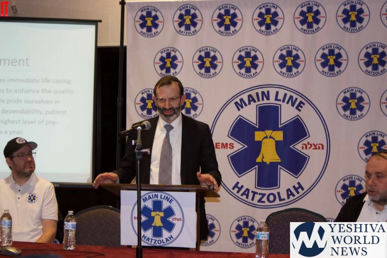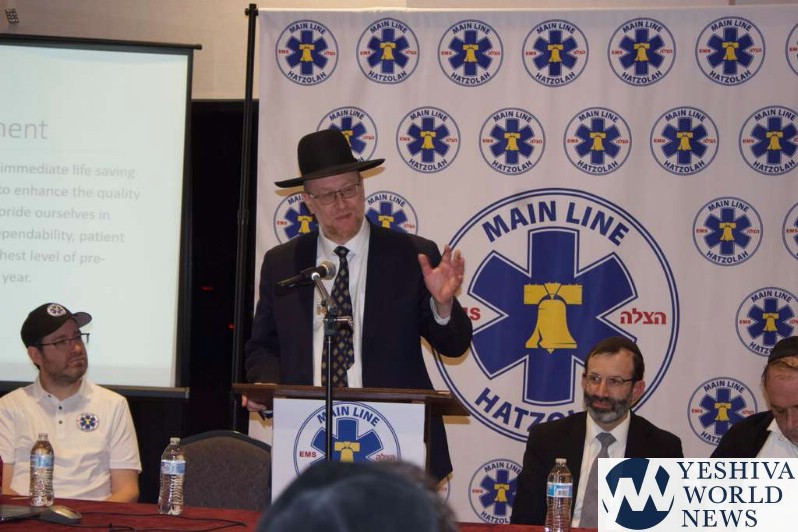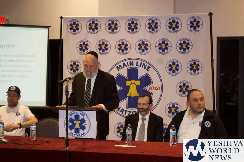 The evening continued with opening remarks from Sid Laytin acknowledging the VIPs in attendance, including the aforementioned chiefs, a ward commissioner, the va’ad harabbanim, and the board of directors. He further recognized the many people who worked hard and sacrificed to make the dream of a local Hatzolah a reality with an acute emphasis on three individuals. Namely Tzvi Rudin, a 15yr EMT who now serves as Operations Captain and leads the team of 15 Responders; Avraham Vegh, a volunteer with the local fire station and technologist who leads Main Line Hatzolah’s technology, security and infrastructure. And Moshe Starkman, Main Line Hatzolah’s Executive Director and workhorse.