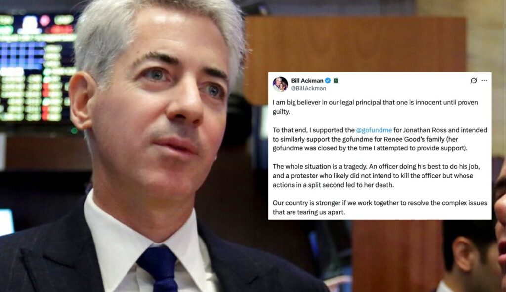 Ackman, the founder of Pershing Square Capital Management, took to X to acknowledge the contribution to a fundraiser for ICE agent Jonathan Ross, saying he was motivated by a belief in the legal principle that individuals are “innocent until proven guilty.”