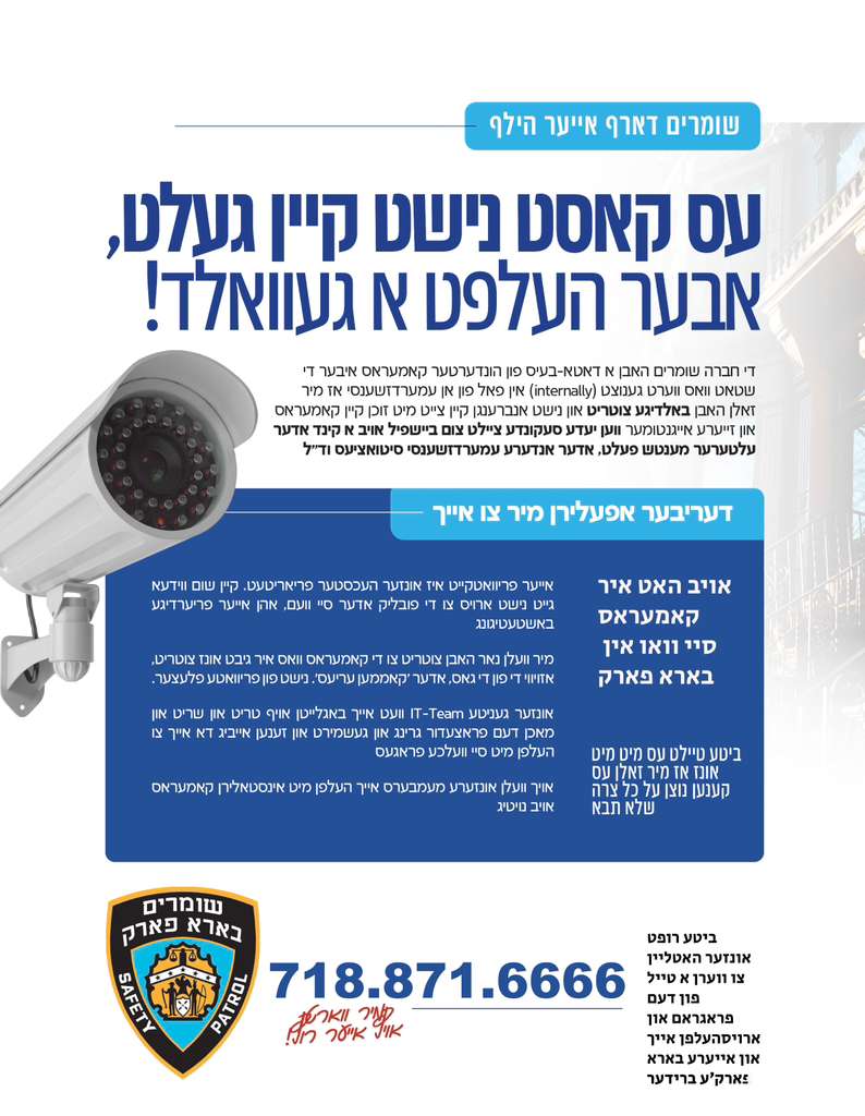 Boro Park Shomrim noted that many residents already participate in the organization’s community camera network in addition to Shomrim’s own security infrastructure, allowing for faster response times when incidents occur.