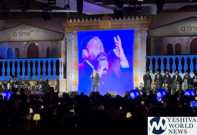 The evening’s musical program featured the Freilach Orchestra, the Shira Choir, and Yonatan and Aharon Razel, elevating the already electrified atmosphere. In a surprise highlight, Mordechai Ben David appeared to the delight of the crowd, performing beloved nostalgic hits in a uniquely moving presentation. Massive screens behind him displayed archival footage of a younger MBD singing those very same songs, as he performed a live duet with his younger self!