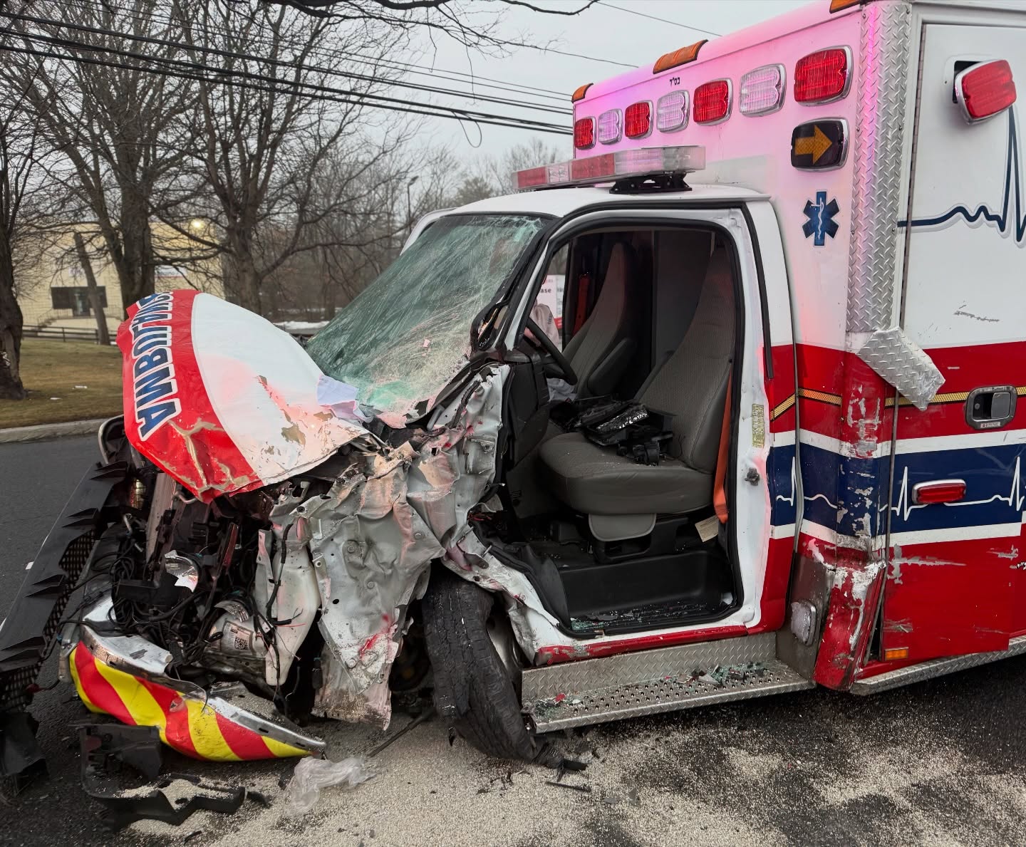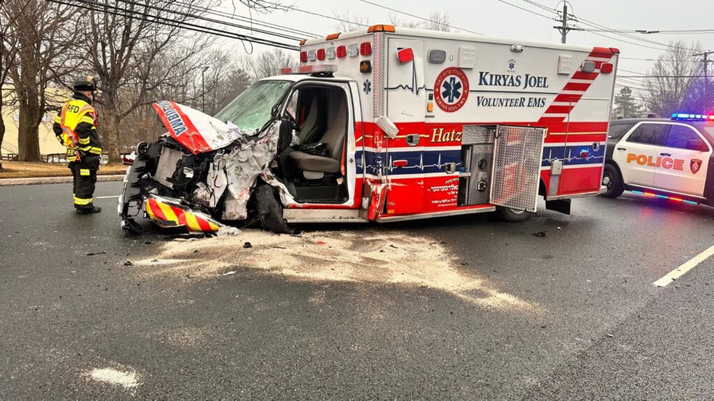 Emergency responders worked for nearly two hours Shabbos morning after a crash involving an Kiryas Joel Hatzolah ambulance on Route 17 in Bergen County near Airmont.
