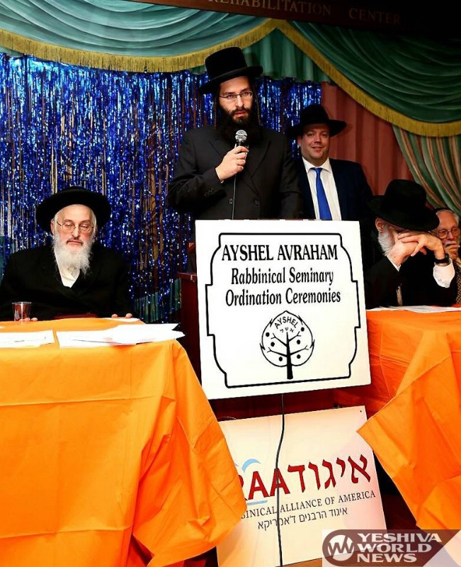 On Monday evening, 22 Teves 5778 hundreds gathered to celebrate the 9th Chag HaSmicha of the Kollel Ayshel Avraham Rabbinical Seminary. As in years past, this renowned kollel, under the aegis of HaGaon HaRav Yaakov Spivak, Shlita of Monsey, New York has seen the finest of rabbinic figures pass through its portals.