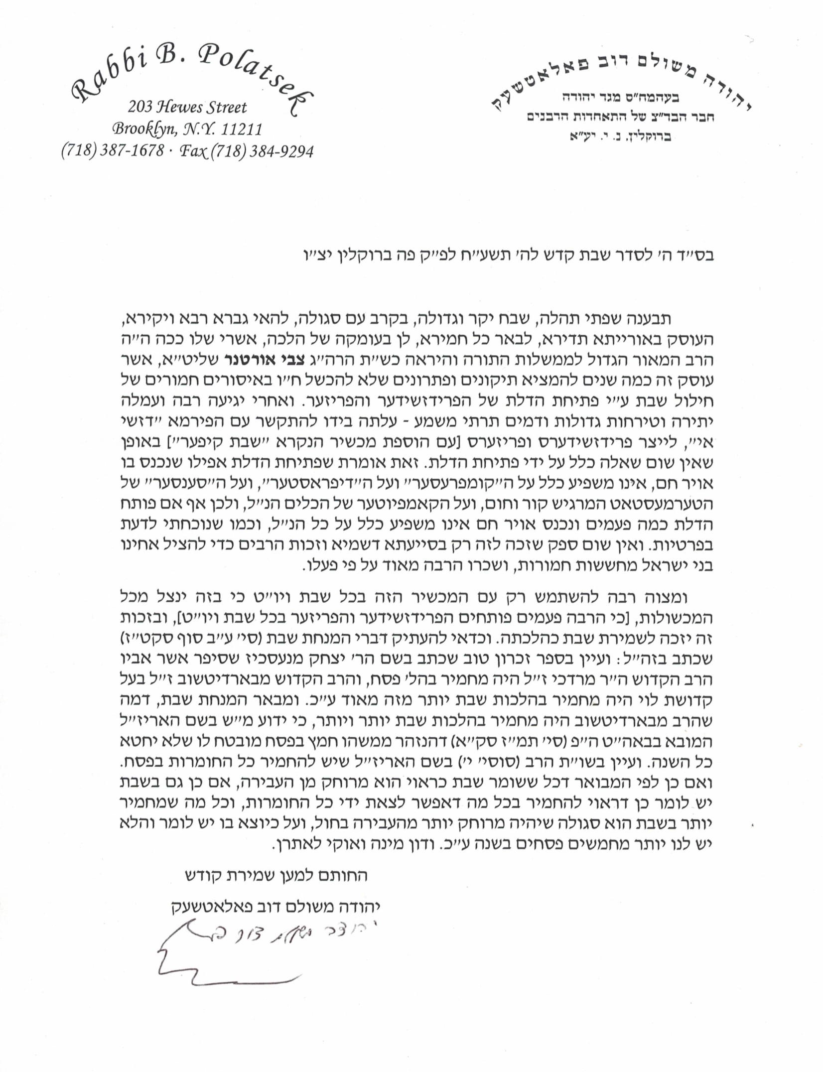 Rabbi Yisroel Belsky, the OU’s late Halachic decisor had for years advocated finding uncompromised solutions for the use of modern refrigerators on Shabbos.