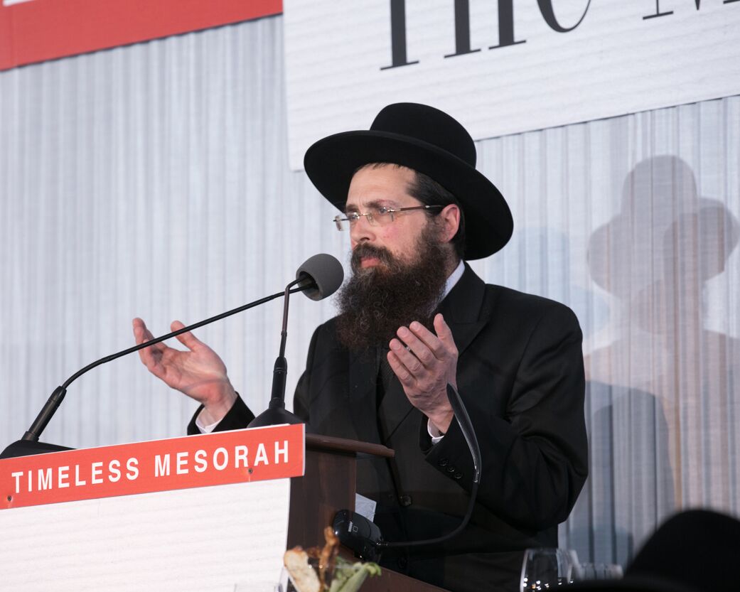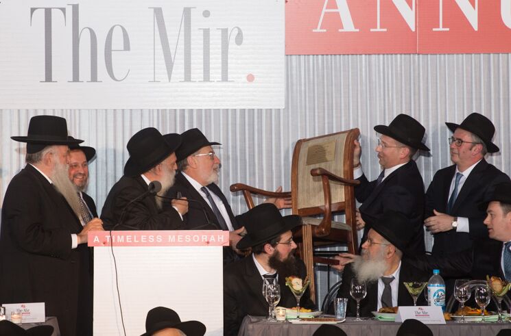 Each of the evening’s honorees passionately conveyed their unwavering respect for the Bnei Torah in their own way. Mr. and Mrs. Avrohom David were presented with the Harav Nosson Tzvi Finkel Memorial Award; they received a chair that belonged to Rav Nosson Tzvi. Reb Avrohom warmly recounted the 52-year kesher he enoyed with the Rosh Hayeshiva zatzal. Mr. and Mrs. Bentzion Heitner, the Guests of Honor, received a cherished Sefer Tehillim that belonged to the Rav of Mr. Heitner’s native community in Australia. Reb Bentzion elaborated on the way the Mir continues to galvanize so many friends and supporters with a desire to be mechazek Torah.