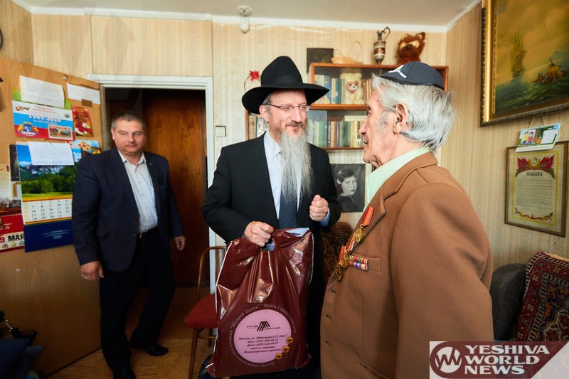 This special project for the Jewish war veterans was initiated by Rabbi Lazar who personally went to visit an elderly Jew named Yaakov Viderman in his home in the Marina Roscha neighborhood. Yaakov was so moved by this visit, he put on Tefillin for the first time in his life at age 93, and had a mezuzah affixed to his door.