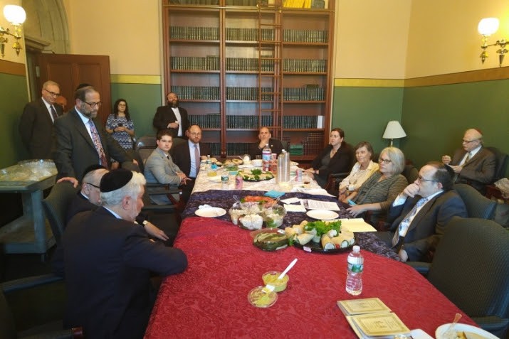 Around the table L-R: NYS Assemblymember Bobby Carroll, NYS Senator Leroy Comrie, Abe Wurzberger, Yomtov Malik, Isaac Stern, NYS Assemblymember David Weprin, Zelig Gitelis