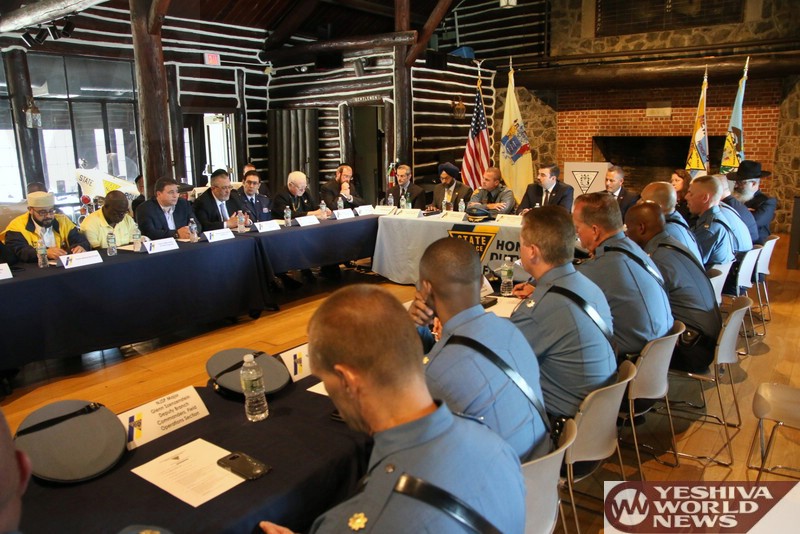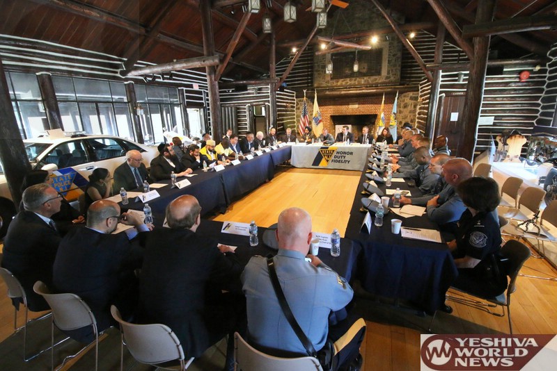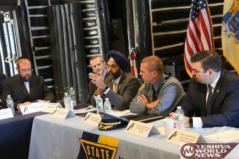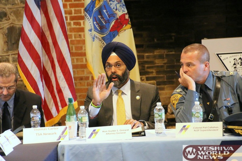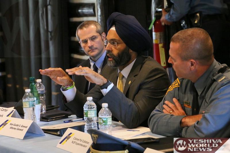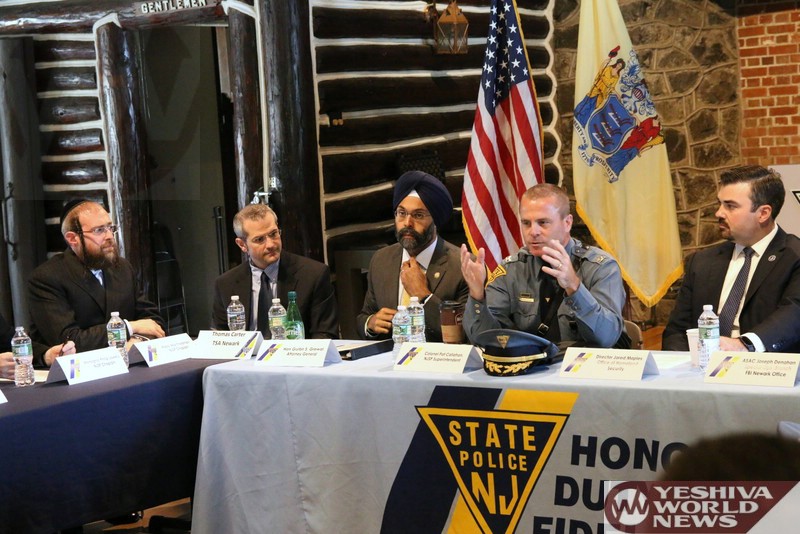 On the local level, Lakewood Committeeman Meir Lichtenstein praised law enforcement officials for their dedication, vowing his full support for the many agencies who are committed to ensuring the safety of New Jersey residents on a daily basis and thanking Attorney General Grewal for his tough stance on hate crimes, a solid deterrent that would hopefully reduce the number of bias incidents in the state. Representing 58 Chabad centers in New Jersey, Rabbi Avi Richler described the meeting as a golden opportunity to building trust and ensuring communal safety.