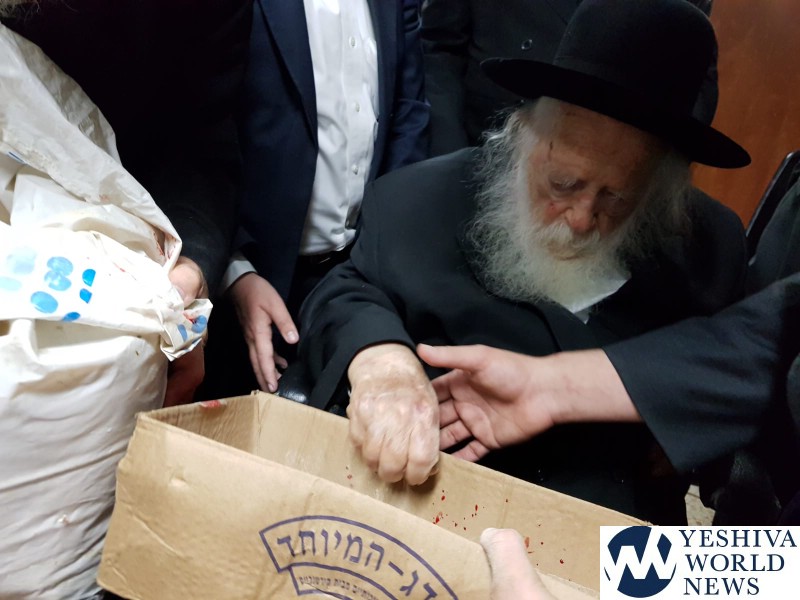 PHOTOS: Hagaon HaRav Chaim Kanievsky Doing Kapparos And “Kisuy Hadam”