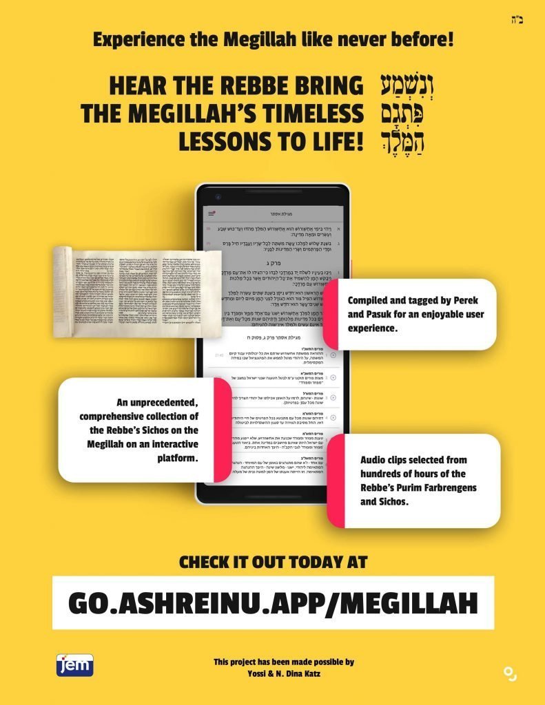 Yisroel Slonim sees the project as a microcosm of the Rebbe’s scholarship, calling the interactive megillah “one opportunity for a glimpse into the vast amount of Torah and guidance the Rebbe so generously gave us.”