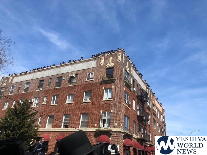 12:45PM ET: Rooftop footage of thousands following behind the Aron of the Skulener Rebbe following the Levaya.