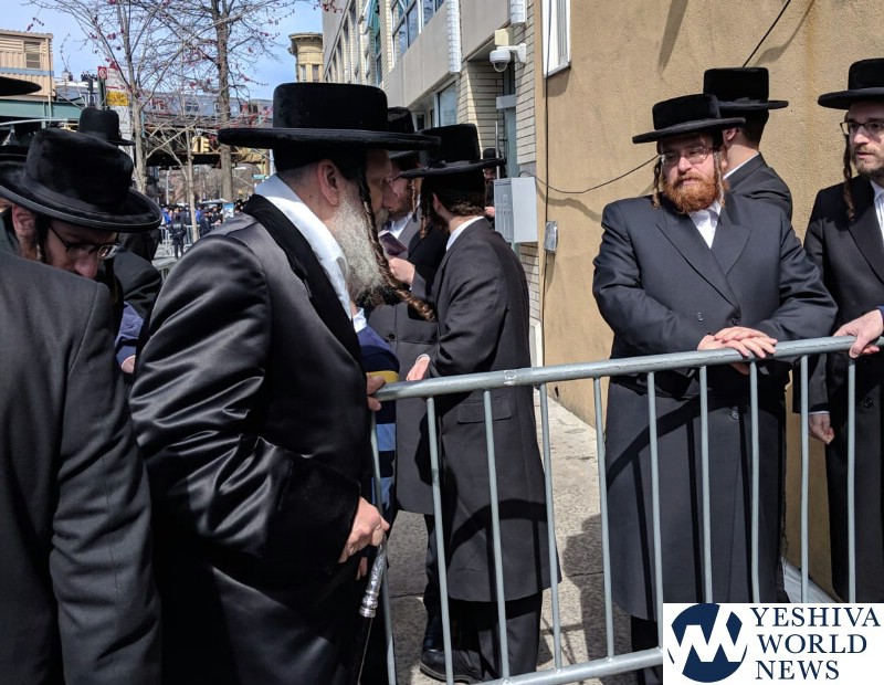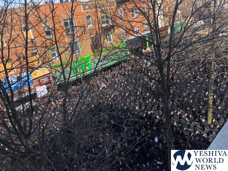 9:50AM ET: Crowds beginning to gather in Boro Park just one hour before the levaya of the Skulener Rebbe: